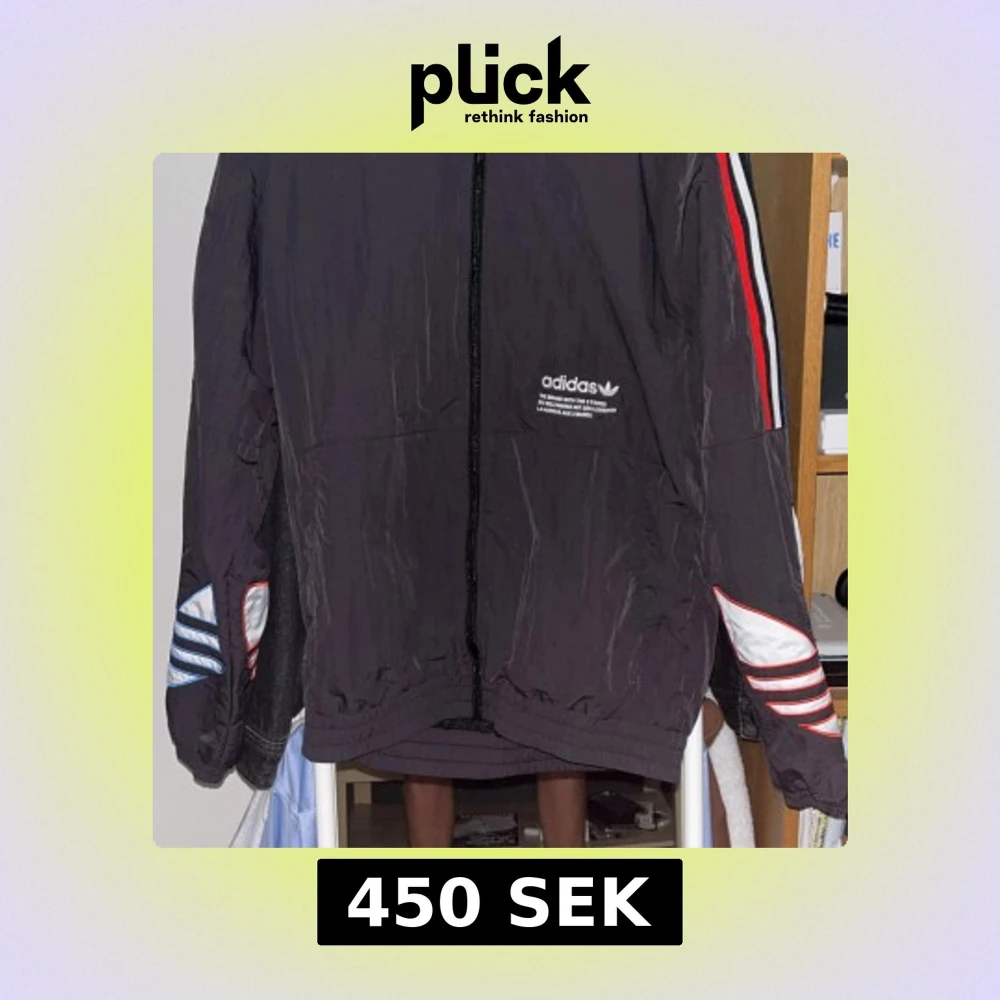 Svart vindjacka från Adidas med dragkedja och coola detaljer i rött, vitt och blått på ärmarna. Jackan har klassiska Adidas-ränder på axlarna och logga på bröstet. Tillverkad i lätt syntetmaterial, perfekt för dig som gillar sportig och streetig stil.