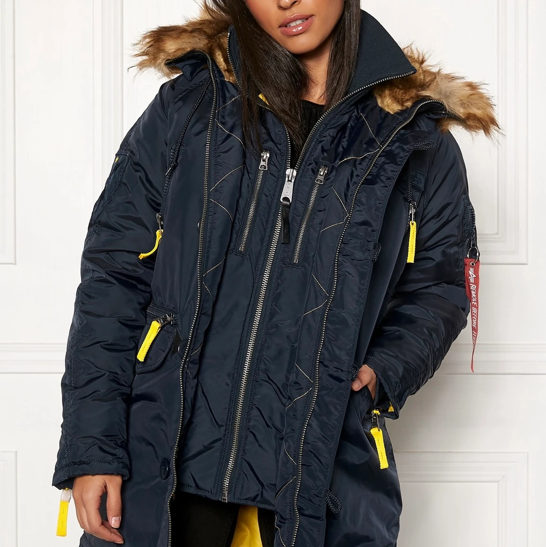 Alpha jacka, fejk päls.