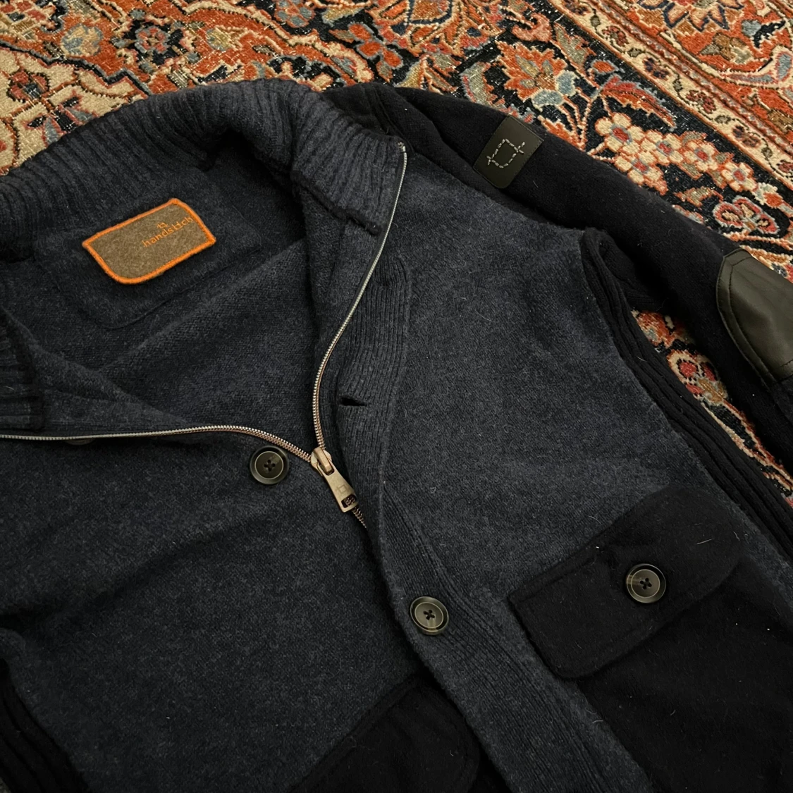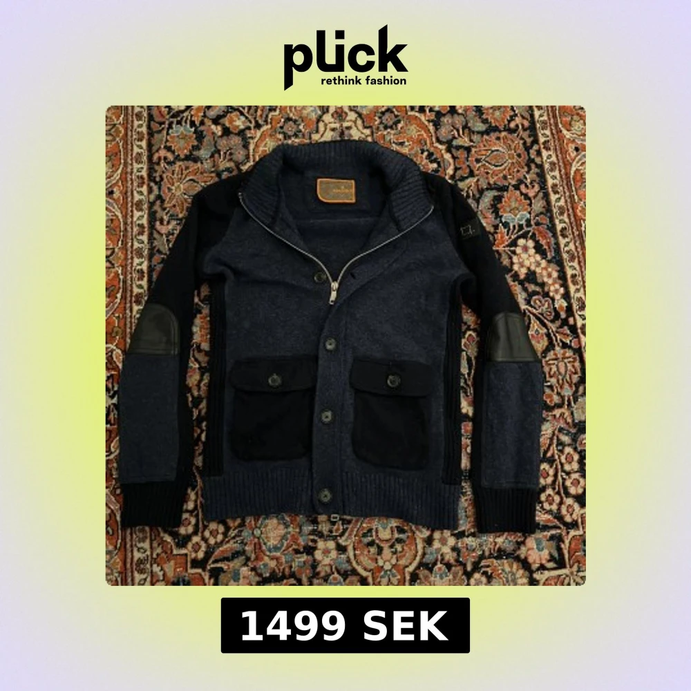 Säljer denna sjukt snygga och fina cardigan. Denna är 100% ull vilket gör den extremt skön och varm. Den är från tyska märket ”handstich” jag kunde inte hitta exakt denna jacka på nätet men en liknande har nypris på drygt över 6000🤯 Mått: Bredd: 47cm Längd:64cm