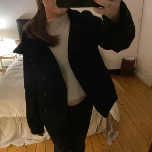 Svart kort kappa, liknar den populära arket kappan. Storlek 34 men funkar även för en 36. Köparen står för frakt