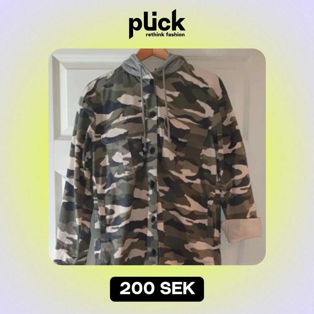 Tuff huvjacka av märket Divided. Gråmelerad trikå luva med snören. Två bröstfickor och två sidfickor. Knäpoes med knappar. 100% bomull.Tvättas i 40 grader. Fint skick. Priset är inklusive frakt inom Sverige