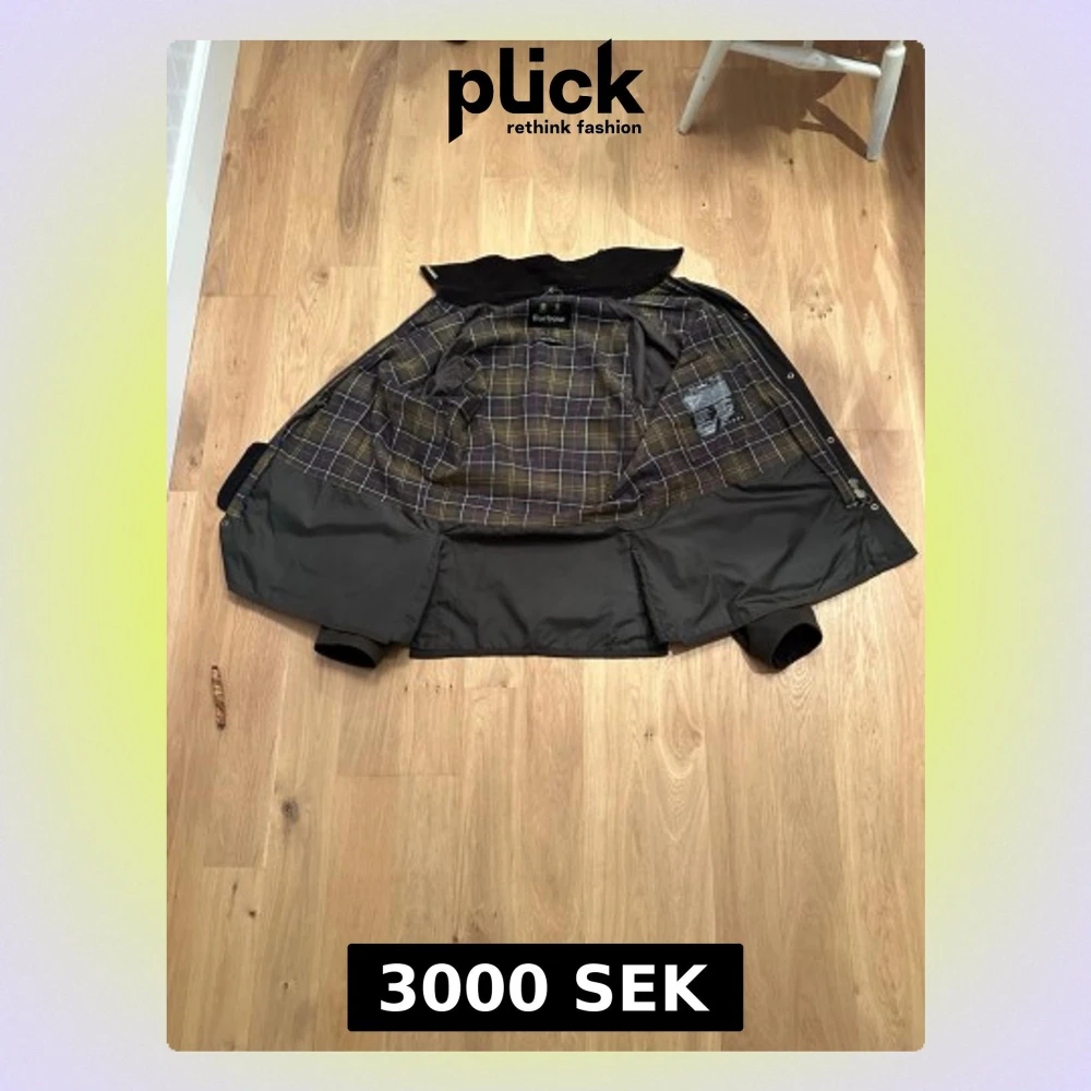 Klassisk vaxad jacka från Barbour med rutigt innerfoder i beige, grått och gult. Jackan har tryckknappar, krage i manchester och två stora fickor framtill. Perfekt för dig som gillar tidlös brittisk stil och funktionella ytterplagg. Inköpt för ca 1 år sedan på NK men ej blivit använd.
