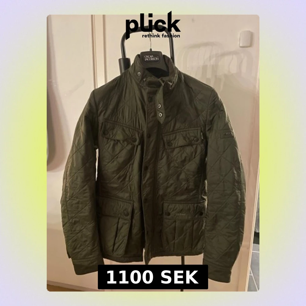 Quiltad olivgrön jacka från Barbour International med fyra fickor framtill, hög krage och snygga tryckknappar. Jackan är tillverkad i polyamid med mjuk polyesterfoder och har dragkedja samt knappar framtill. Perfekt för kyliga dagar med stilren look.