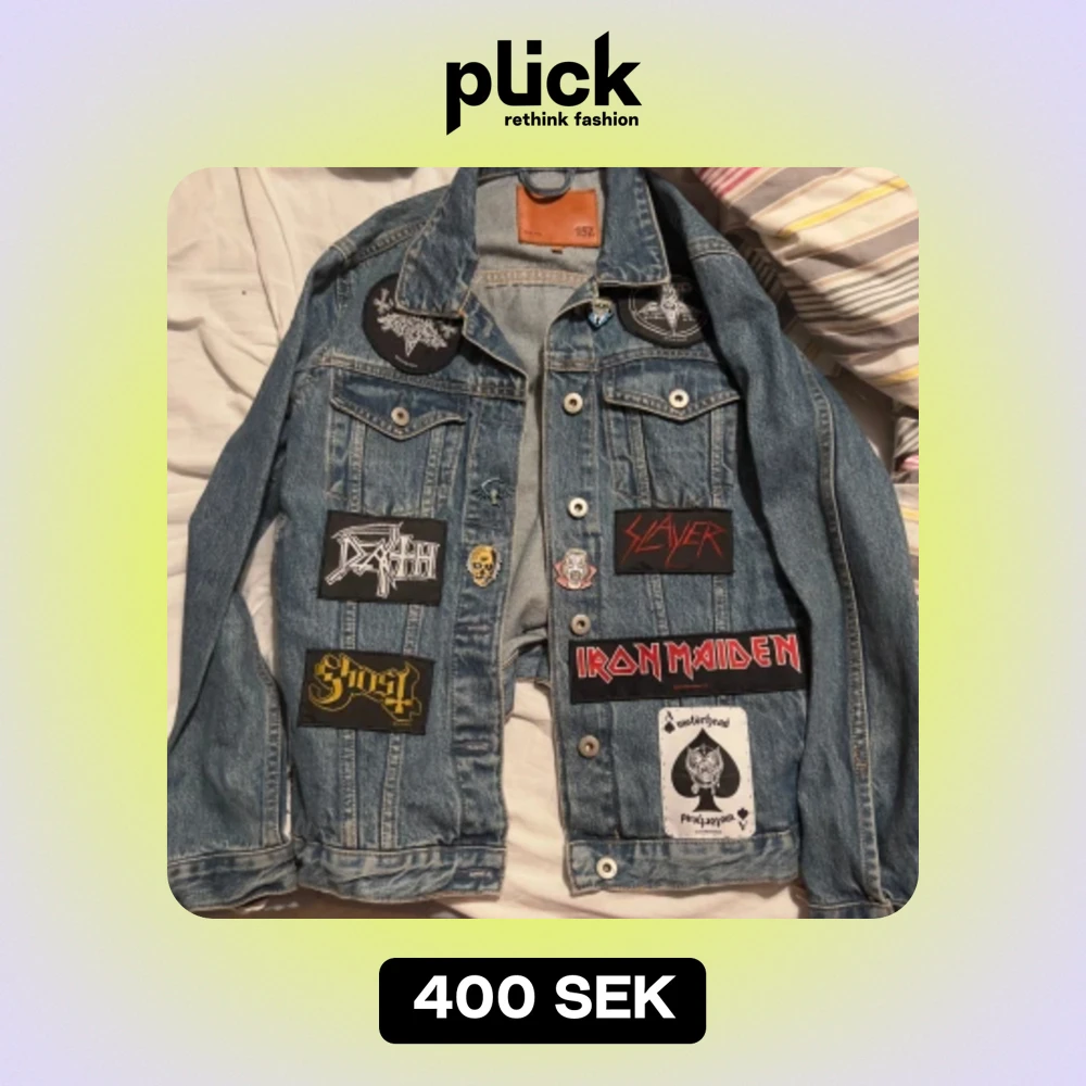 säljer nu min fina battle jacket jag gjort själv 🫶den är i gott skick (använd fåtal gånger) och har flera patches samt pins med metalband!