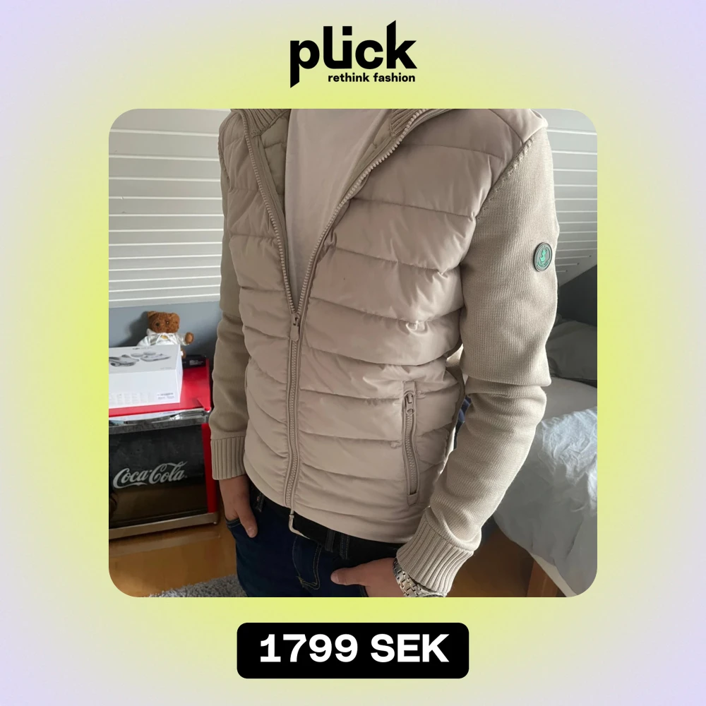 Säljer en snygg beige jacka från Save the Duck i mycket bra skick. Jackan har en quiltad framsida med dragkedja och ribbstickade ärmar och krage. Perfekt för höst och vår! Använd Max 4 gånger!!!! Helt ny. Passar perfekt för folk som är 165 -175