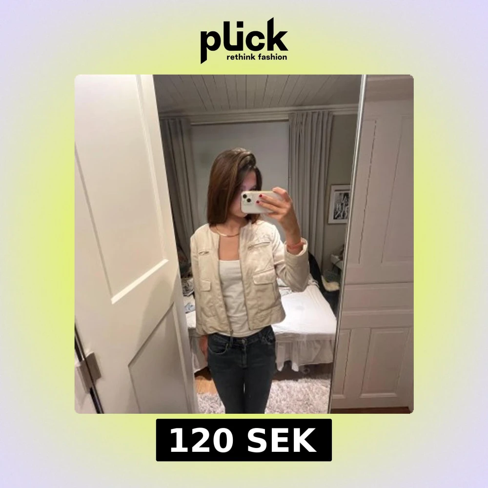 Snygg beige kavaj med långärmad design och knappar framtill. Perfekt för en stilren look. Skriv för mer bilder osv