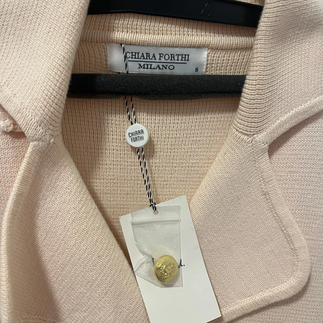 Elegant rosa kavaj från Chiara Forthi med dubbelknäppning och guldknappar. Tillverkad i 100% bomull, vilket ger en mjuk och bekväm känsla. Perfekt för en stilren look. Aldrig använd. Hör av dig för eventuella frågor 🌸kolla gärna in mina andra annonser!⤵️✨