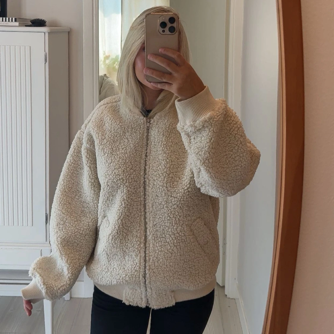 Supermysig beige teddyjacka. Fodrad insida och två fickor på sidorna. Enkel att styla till både jeans och kjol! perfekt till hösten och andra tillfällen 🍁 inga skador nästan som ny! nypris 599kr.