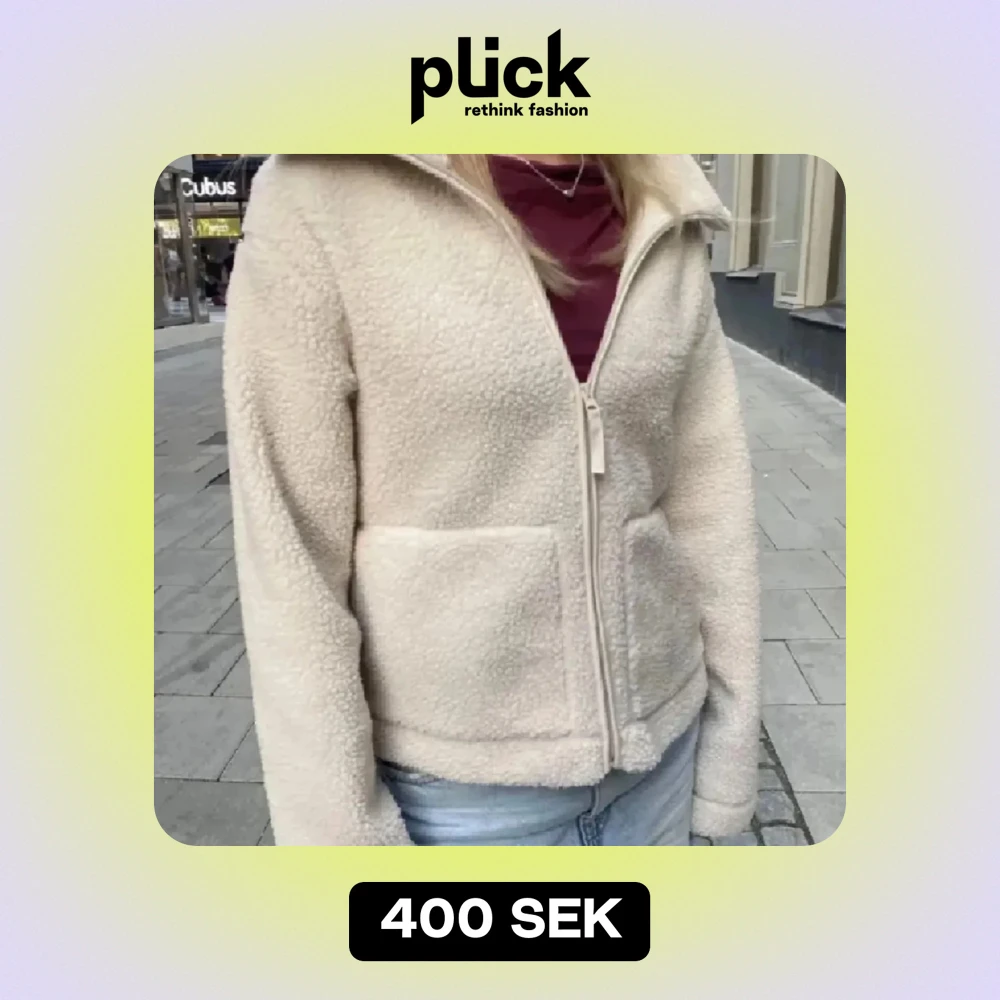 Mysig beige teddyjacka perfekt för höst och vinter. Jackan har en dragkedja framtill och långa ärmar. Den är lite oversized i modellen och superbekväm för kyliga dagar.