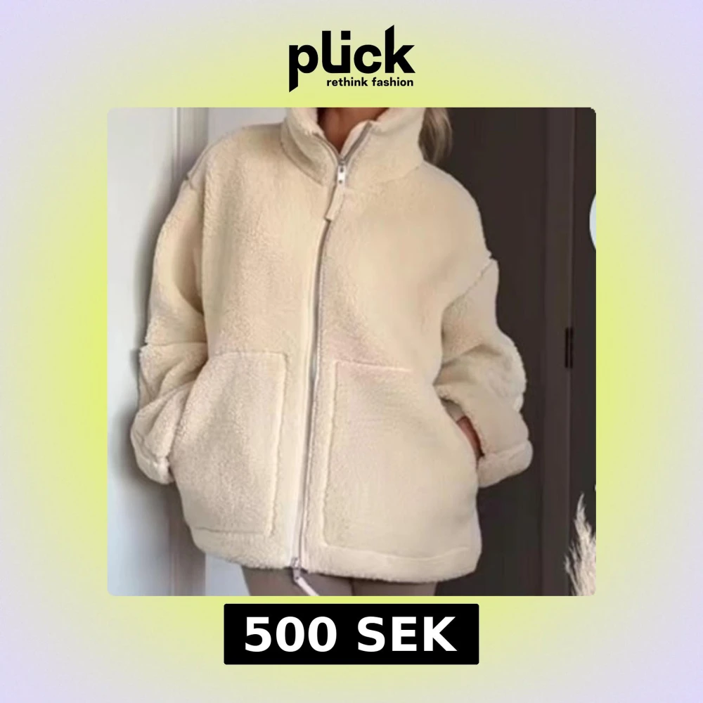 Supermjuk och oversized teddyjacka i beige med hög krage och stora fickor framtill.