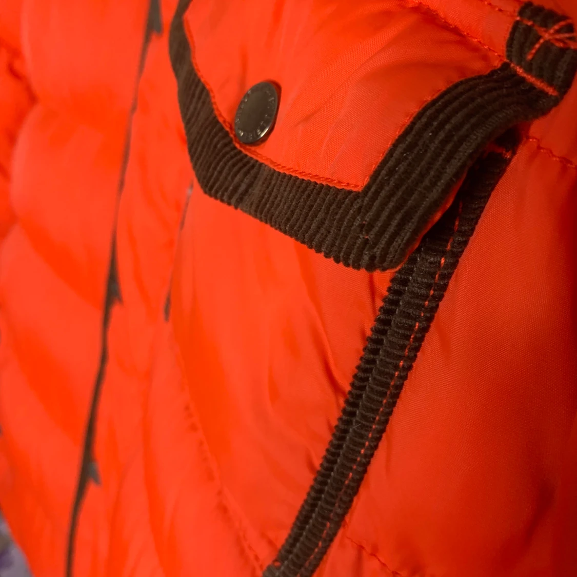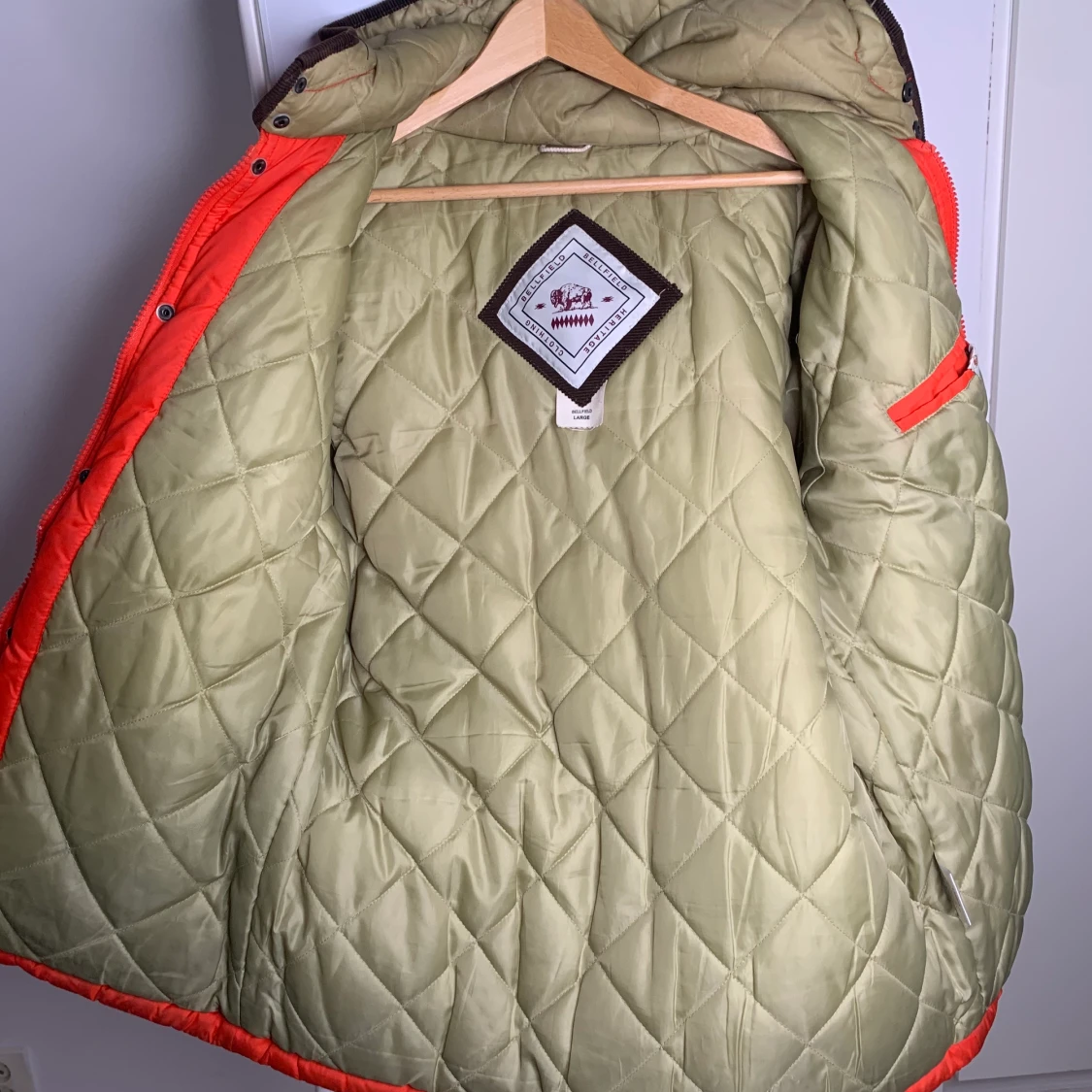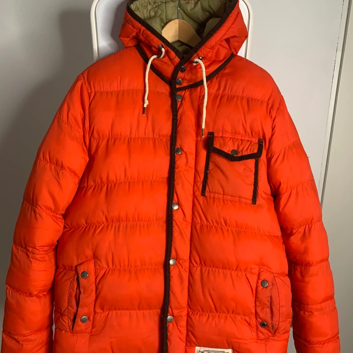 En varm vinterjacka från Bellfield i Oranget med bruna manchesterdetaljer.