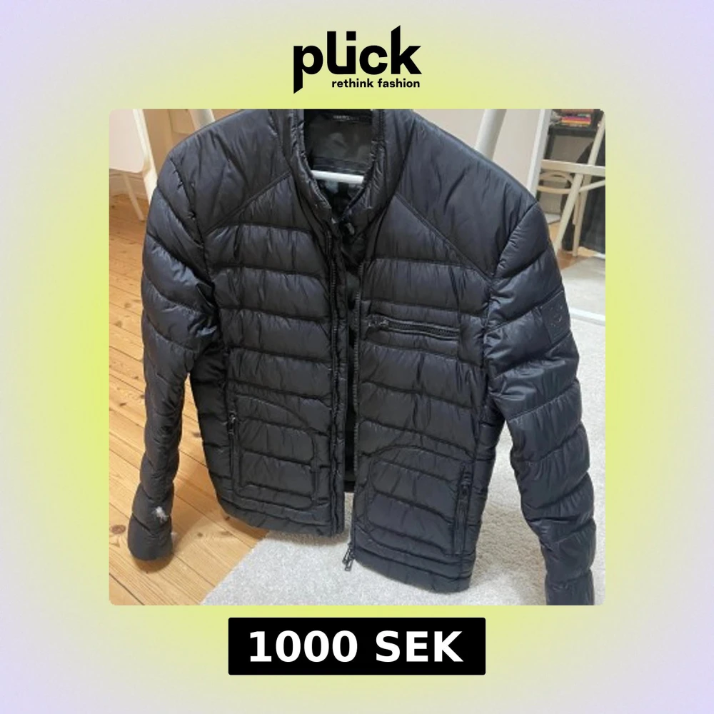 Belstaff jacka i dun med biker stil. Jackan är fint bevarad förutom små hål som släpper dun - se bilder. Det går att laga eller tejpa för men jag har inte haft tid. Nypris: 3899kr