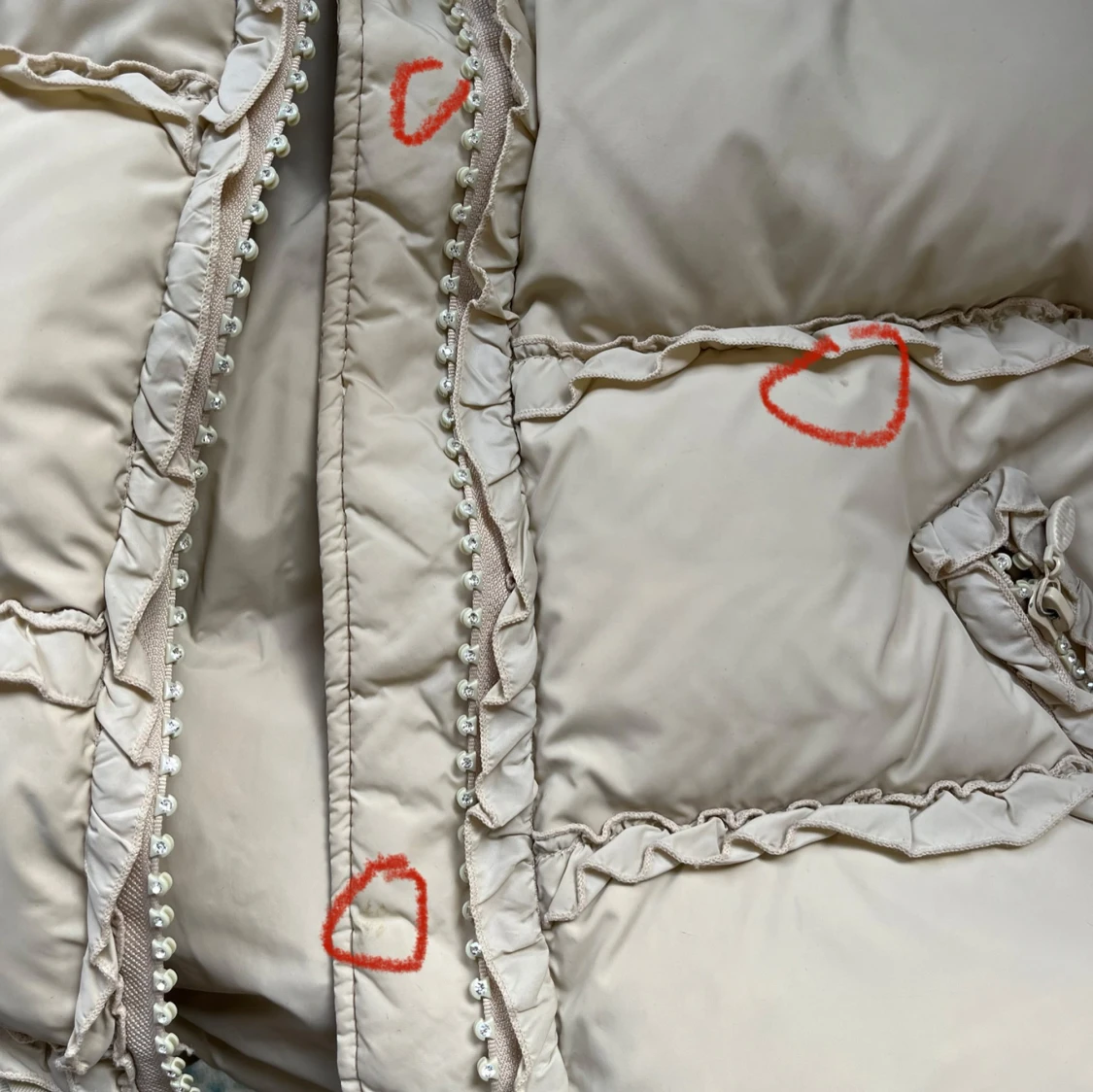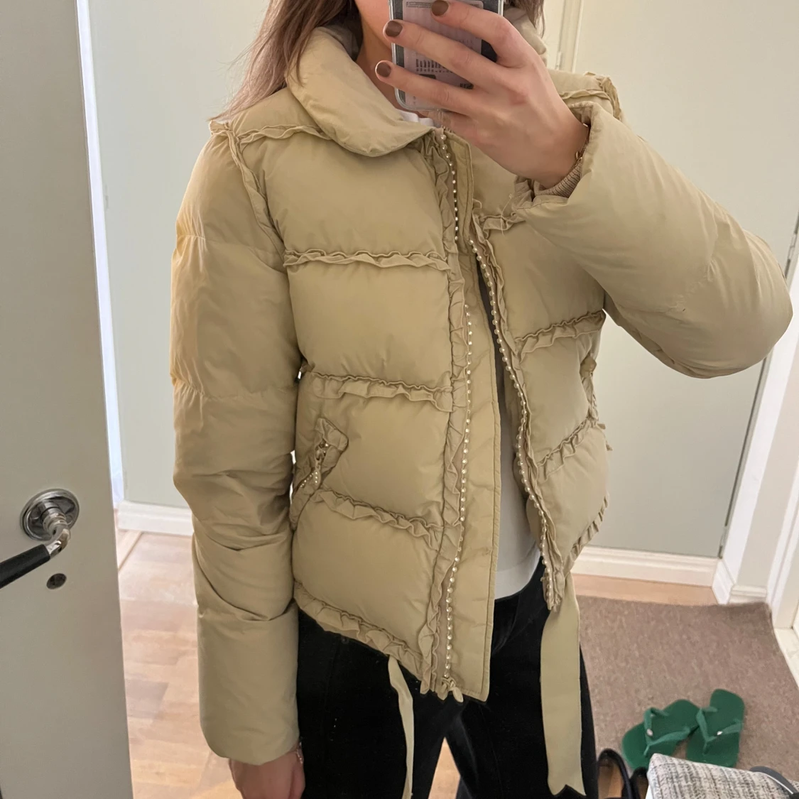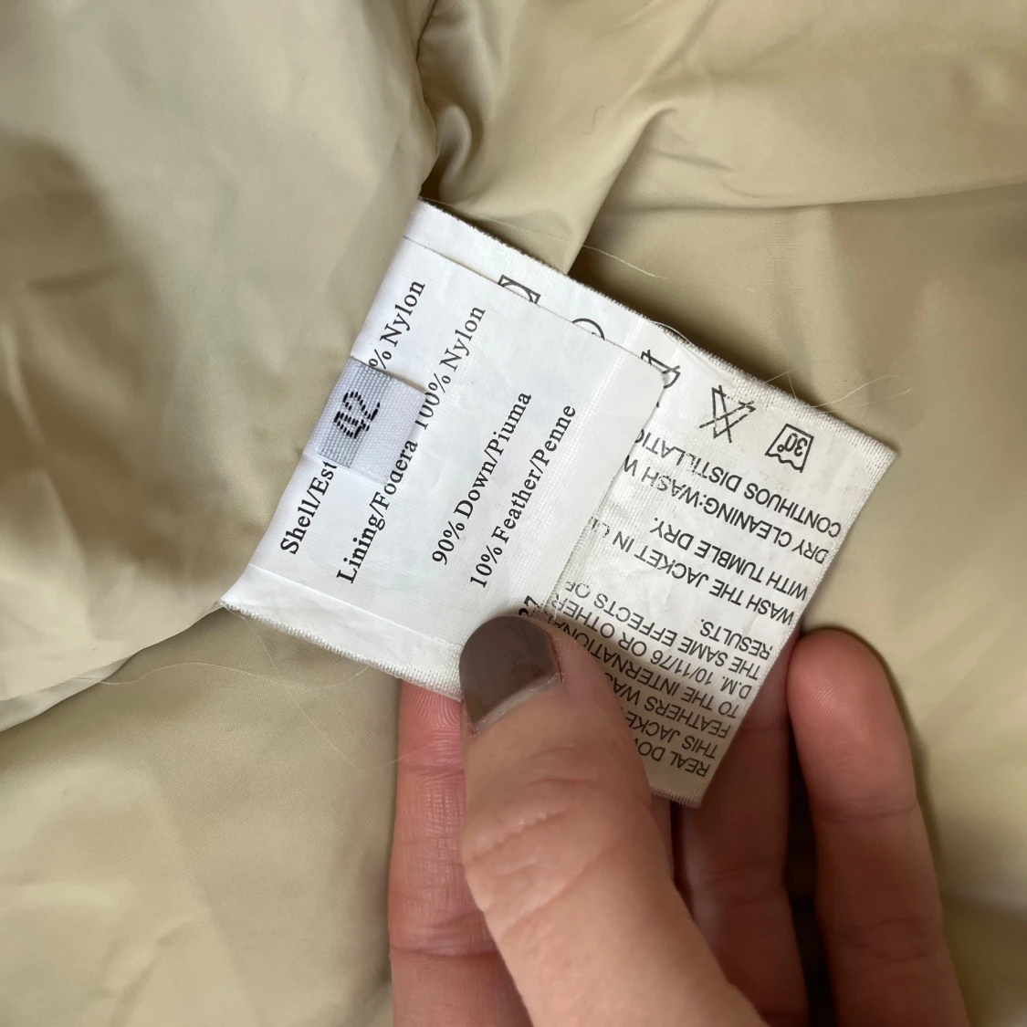 Ljus beige dunjacka från Blumarine. Jackan är vintage så finns små märken på den. Så fin!! Italiensk storlek 42 vilket är small. Den är väldigt lång i ärmarna vilket är skönt när det är kallt