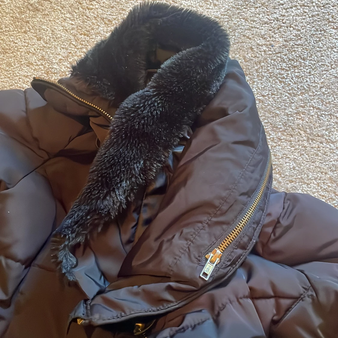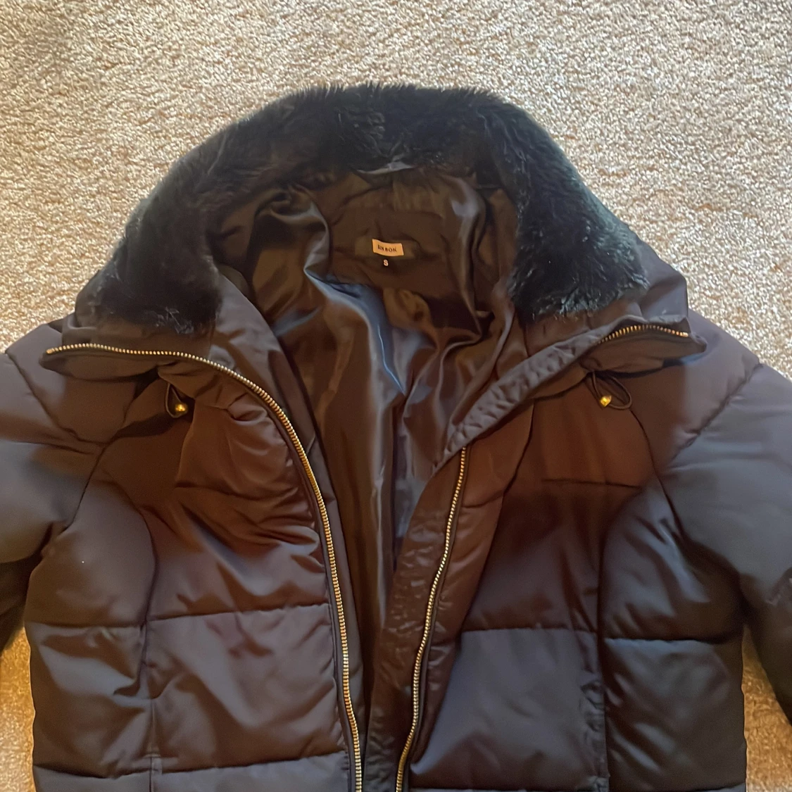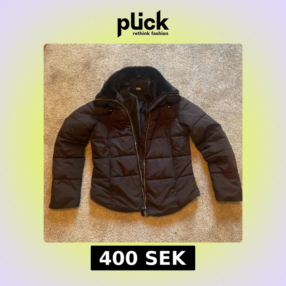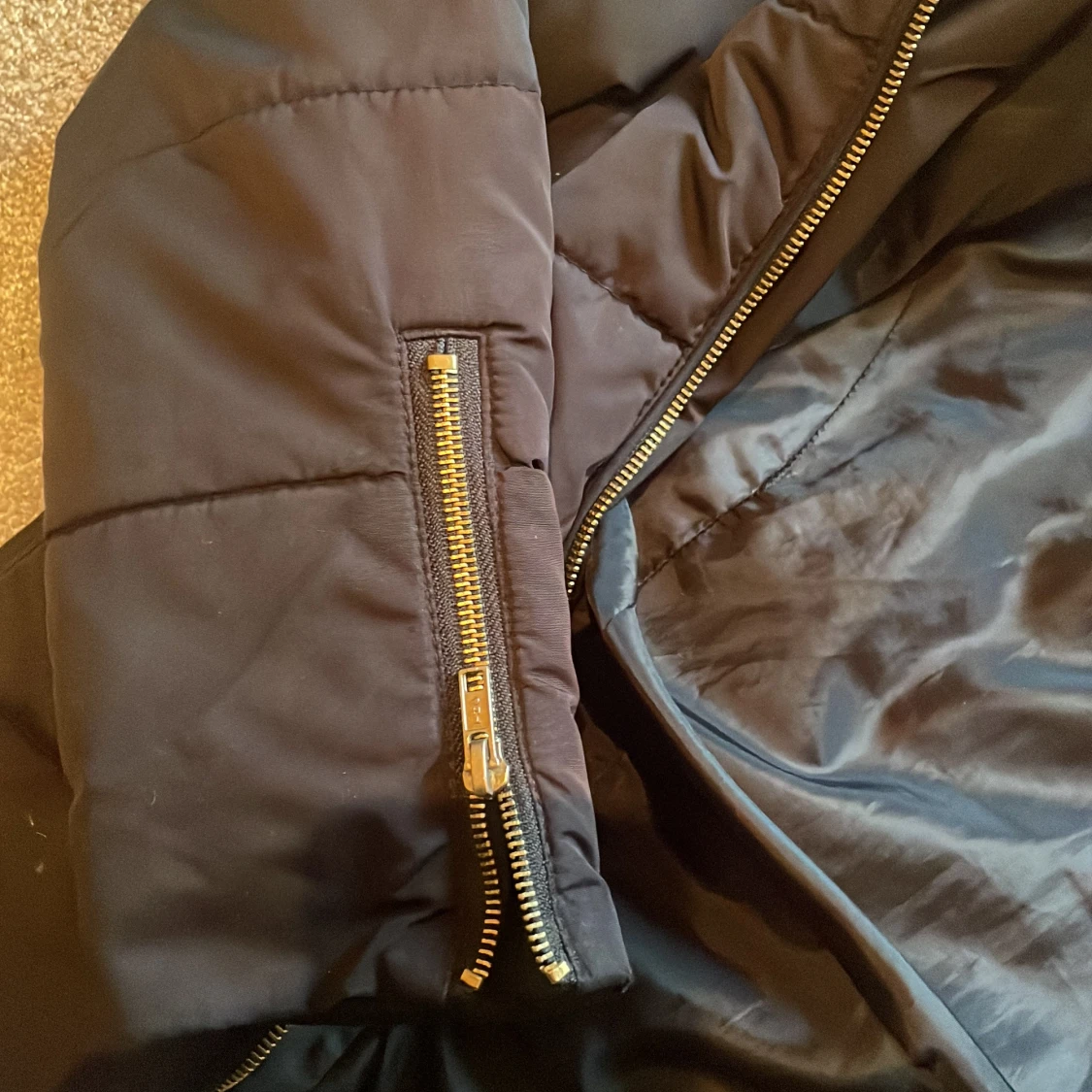Svart pufferjacka från bikbok med snygg fuskpäls på kragen och guldiga dragkedjor. Jackan är quiltad och har lång ärm, perfekt för kalla dagar. Snygg passform och riktigt skön att bära under vintern.