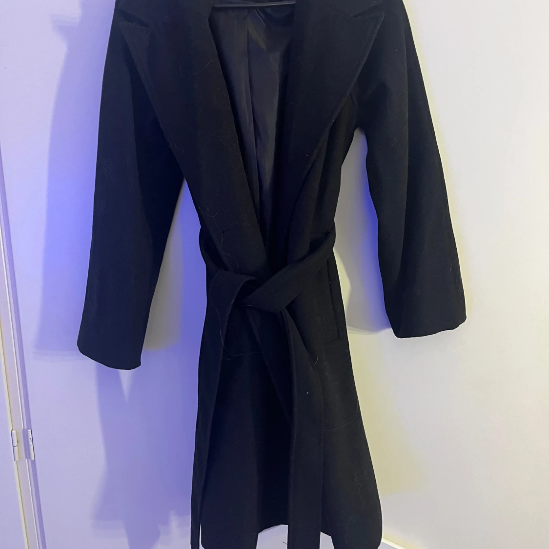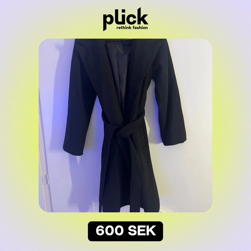 Säljer en svart kappa i mycket bra skick, storlek xs från bikbok. Den har ett bälte i midjan för en snygg passform och långa ärmar. Perfekt för höst och vår. Kappan är stilren och passar till både vardag och fest. Nya Knappar medföljer. Använd 2 gånger.