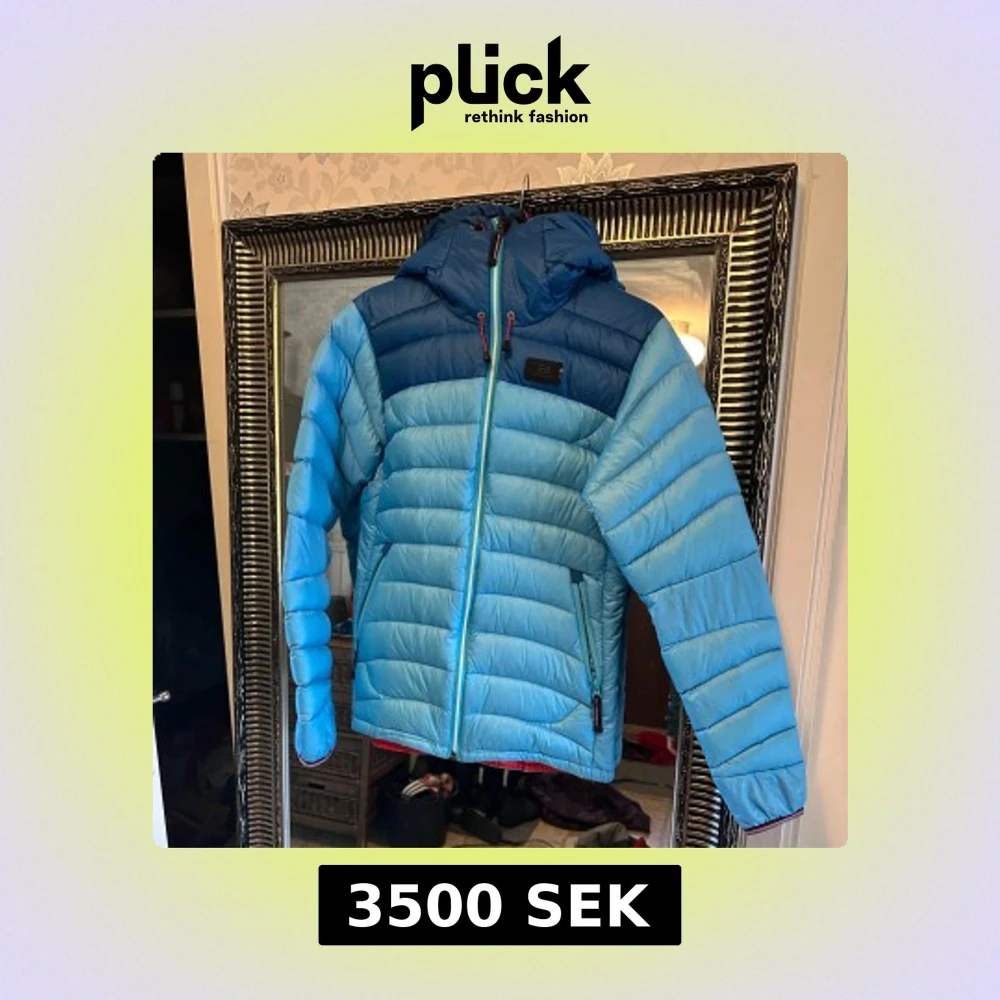 Säljer en snygg blå dunjacka från State of Elevenate, designad i Åre. Jackan har en ljusblå och mörkblå färgkombination med röd insida. Den är långärmad och har en dragkedja framtill. Perfekt för kyliga dagar! Jag köpte den å har inte använt den så nu åker den utt å jag köpte den för typ 4000 tusen å kan ju förhandla om pris 😂👍