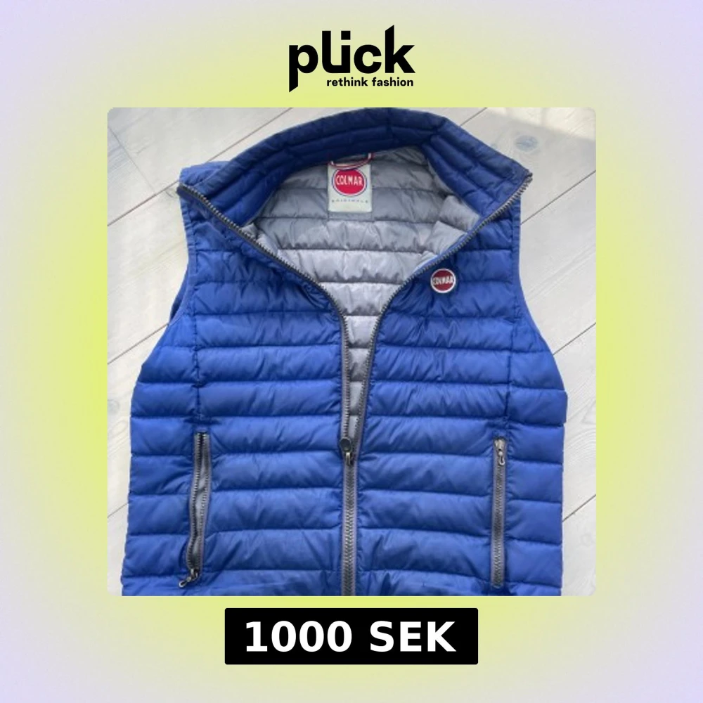 Snygg blå dunväst från Colmar med quiltad design och grå insida. Västen har två dragkedjeförsedda fickor och en tydlig Colmar-logga på bröstet. Perfekt för lager-på-lager och ger en sportig vibe.