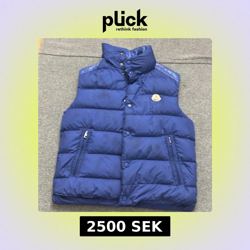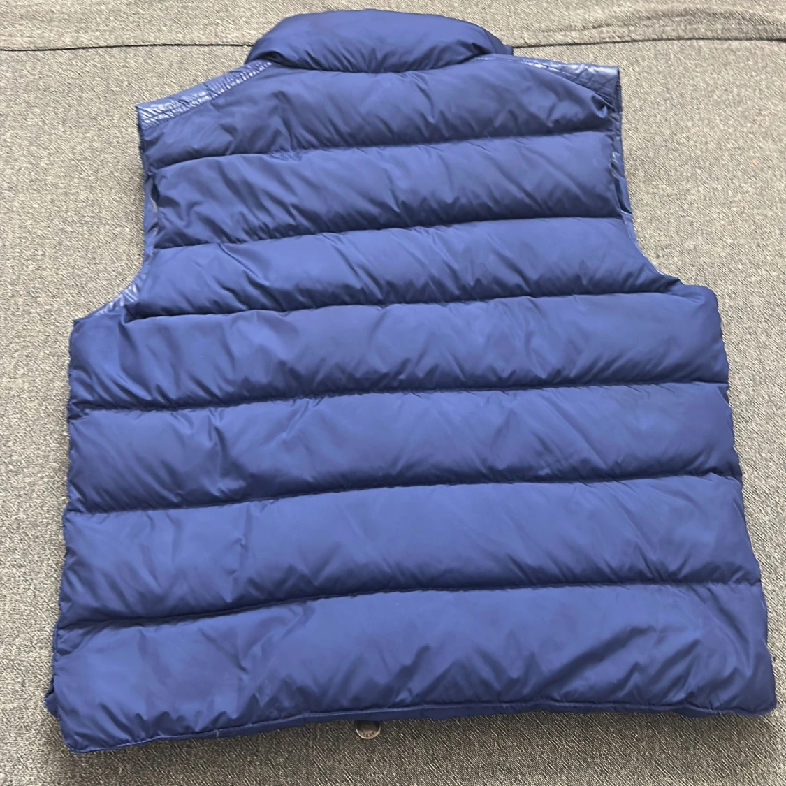 Snygg blå dunväst från Moncler med hög krage och två dragkedjefickor framtill. Västen har quiltad design och klassisk Moncler-logga på bröstet. Perfekt för lager-på-lager och ger en sportig vibe.