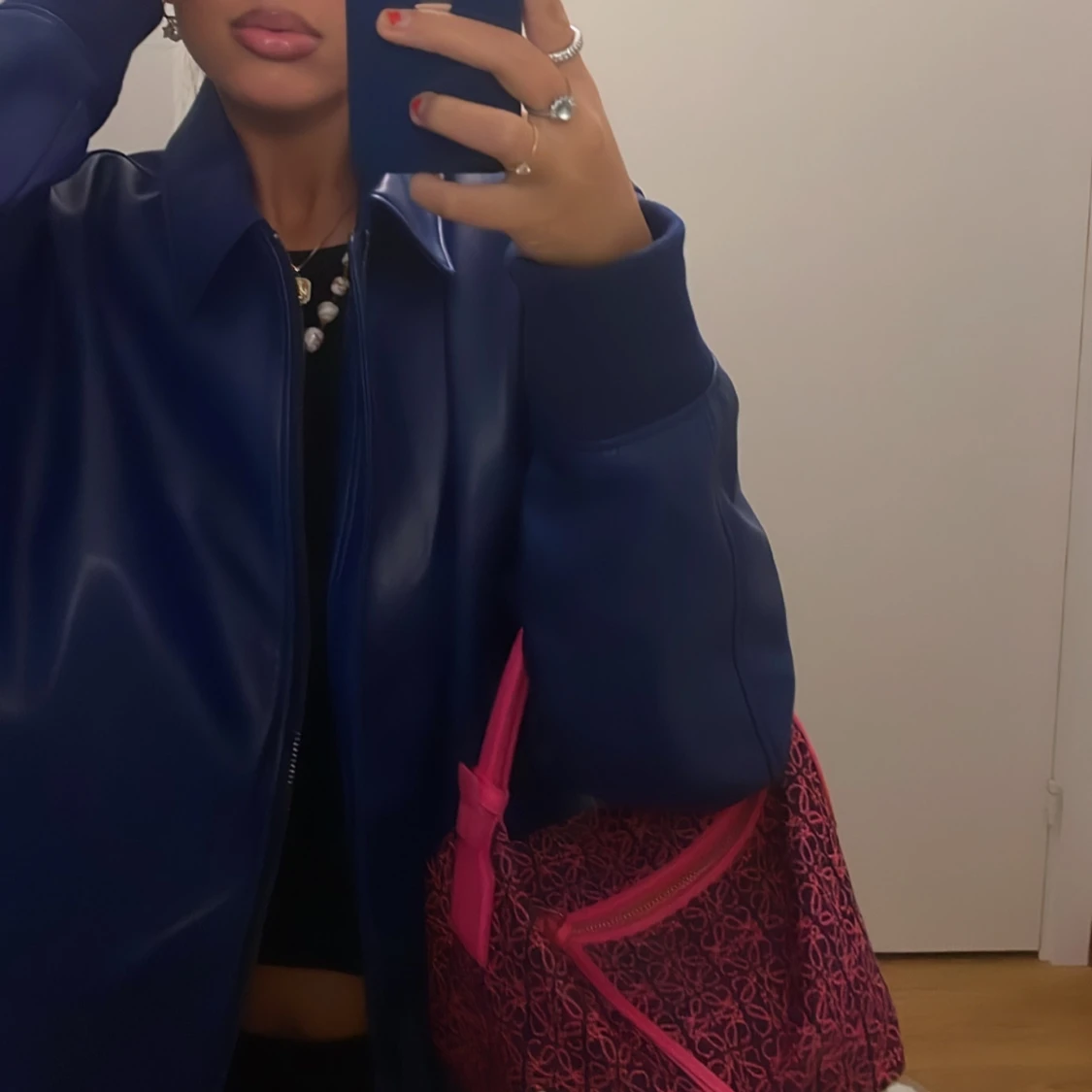 Säljer en ursnygg blå läderjacka i oversized fit.