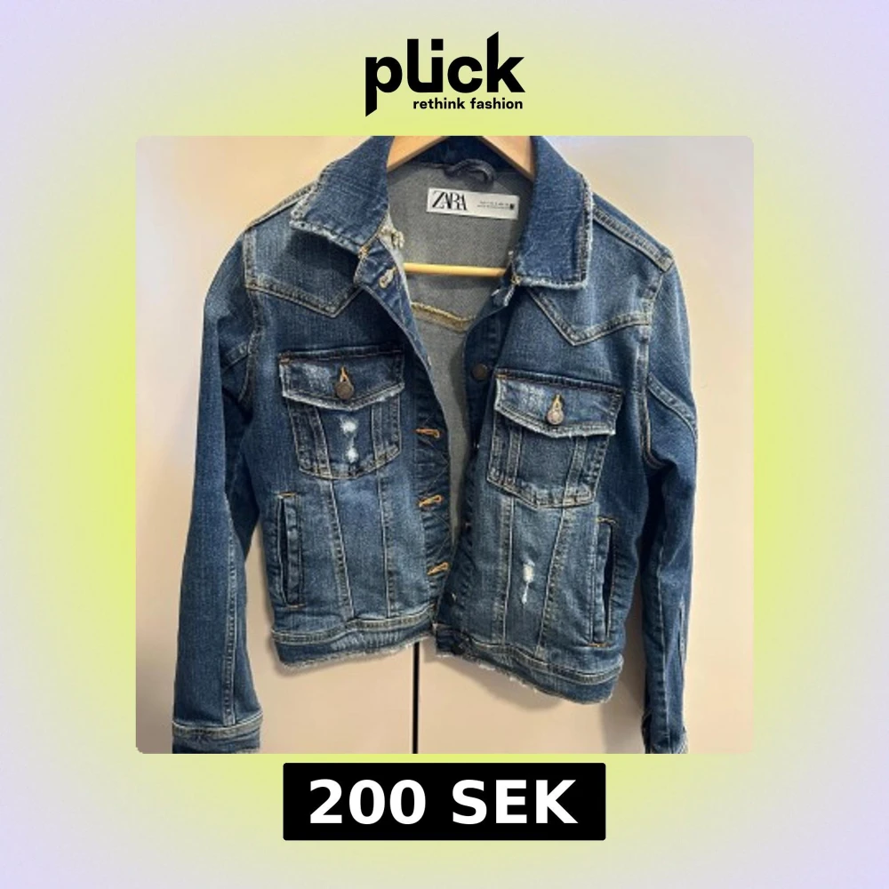 Säljer en klassisk blå jeansjacka från Zara med knappar framtill och två bröstfickor. Jackan har slitna detaljer och markerade sömmar för en trendig look. Perfekt att slänga över en hoodie eller t-shirt.💙