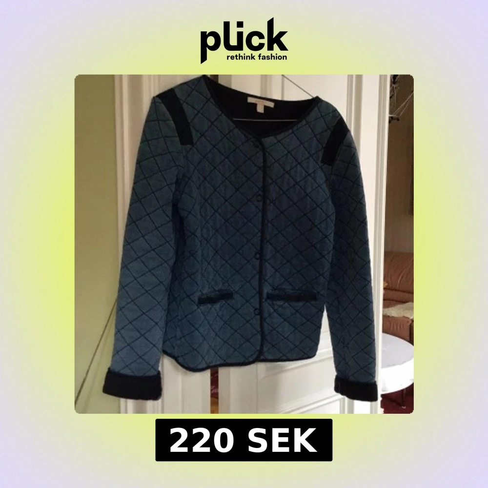 Säljer en snygg blå quiltad jacka från Esprit. Jackan har ett rutigt mönster och svarta detaljer vid axlar och ärmslut. Den är långärmad och har en stilren design med rund halsringning.