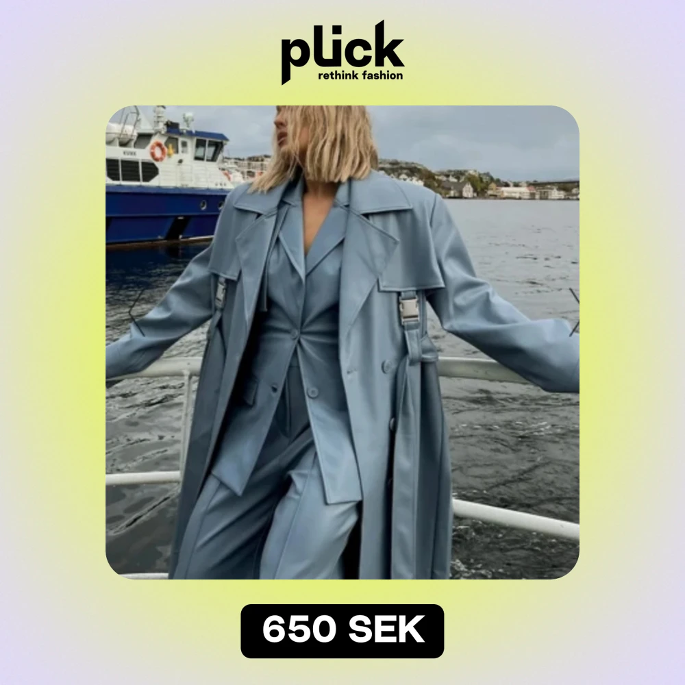 Trenchcoat i läderimitation från Angelica Blick x NA-KD. Helt oanvänd med prislapp kvar. Nypris 1000kr.