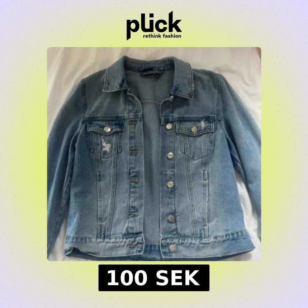 Snygg ljusblå jeansjacka med silverfärgade knappar och två bröstfickor med lock. Jackan har en klassisk krage och raka sömmar, samt slitna detaljer på ena fickan för en cool look. Perfekt att slänga över en hoodie eller t-shirt.