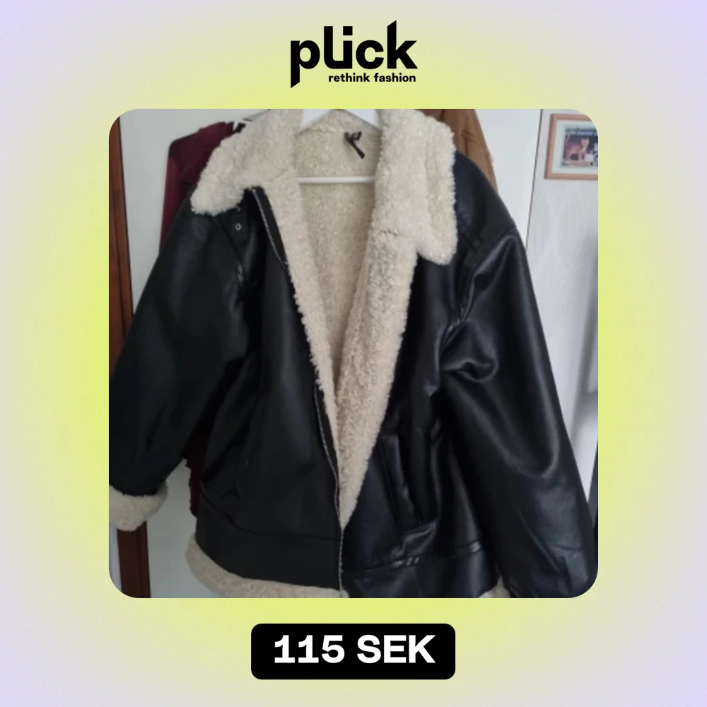 Läderjacka från H&M storlek L. Den är rätt så oversized och väldigt skön.