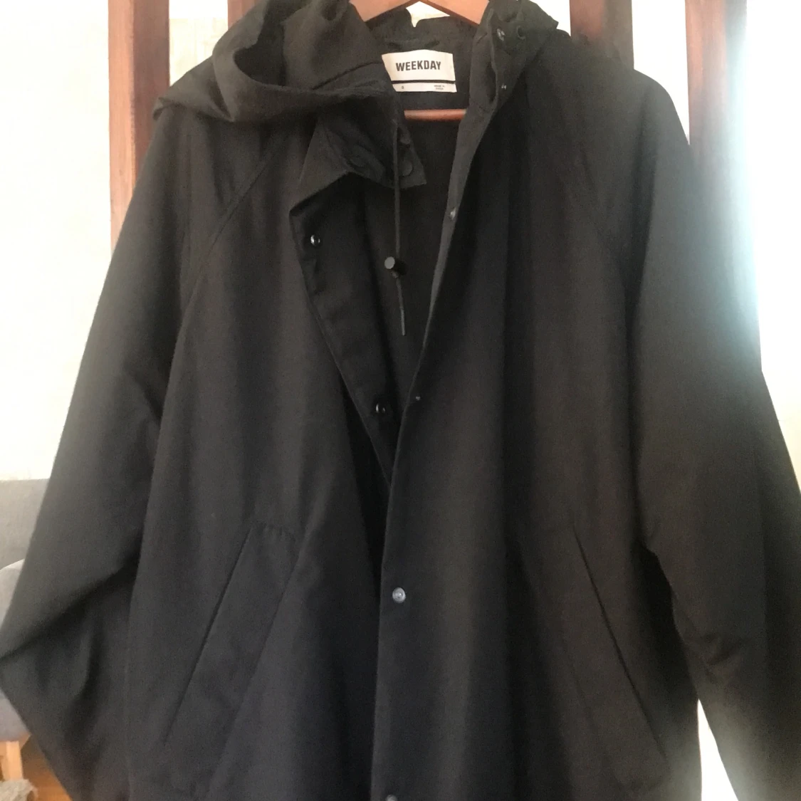 Svart Jacka med luva från weekday. Använd förra hösten men inga skador och väldigt fräsch💕 är i storlek small men väldigt overzised och perfekt nu till hösten🍂 🍁