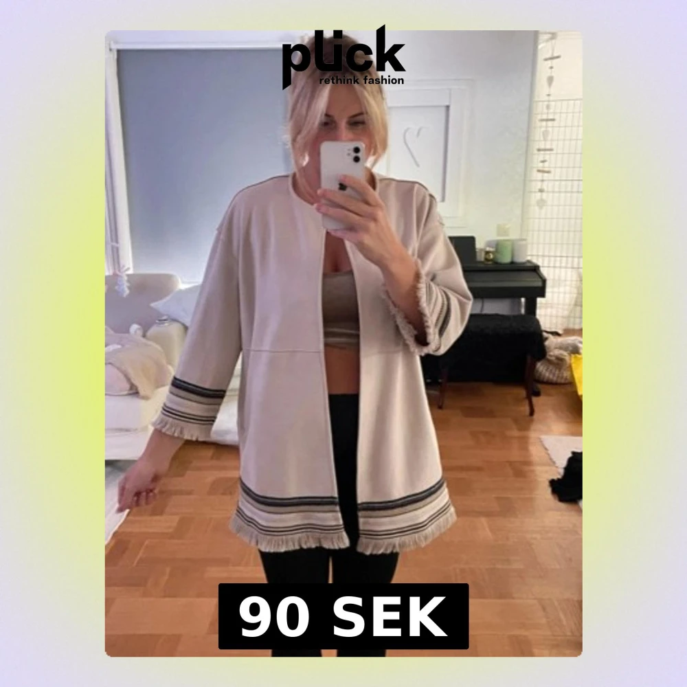 Säljer en beige overshirt / kappa från Zara i storlek S. Jackan har fransar vid ärmslut och nederkant. Den är öppen framtill och har trekvartsärmar. Materialet är mjukt och består av polyester och elastan men ger känslan av mocca (faux mocca) . Bohemisk och i perfekt skick.