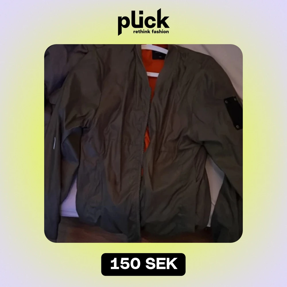 Grön bomberjacka från Galagowear, med orange insida. Jackan är väldigt tunn så skulle klassa den som sommarjacka. Storlek S (herrmodell)
