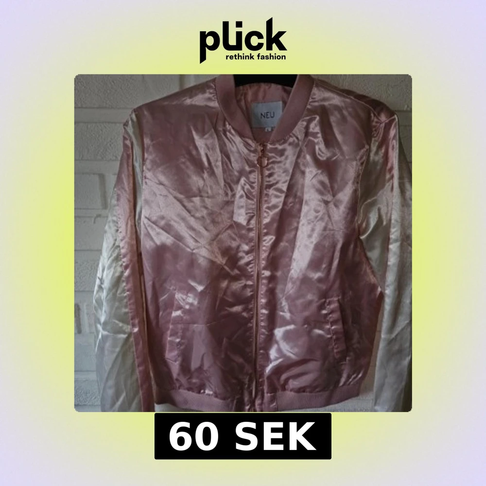 Snygg bomberjacka i glansigt satinmaterial från NEU. Jackan är ljusrosa med vita ärmar och har en rosa rand längs ärmarna. Stängs med dragkedja framtill och har ribbade muddar vid hals, ärmslut och nederkant. Perfekt statement-plagg för dig som gillar att sticka ut.