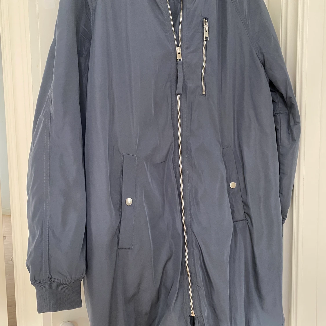 Lindex lång bomberjacka, endast använd 3 gånger. Jätte praktisk och skön!! Jätte fin lavender blå färg. Den är fodrad och är perfekt för höstväder.