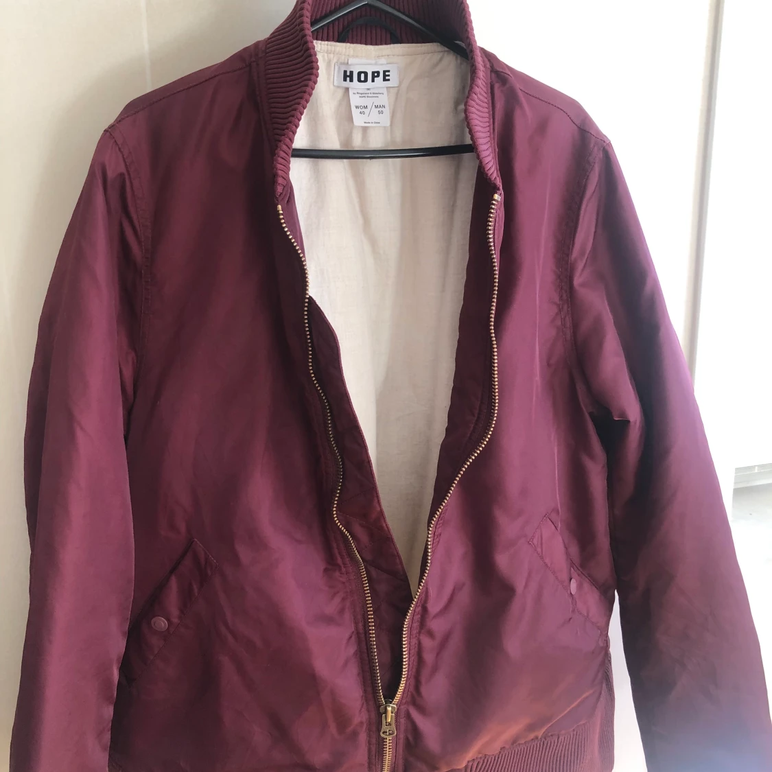 Jättefin jacka från Hope i modell Brick som är en oversized bomberjacka. Mycket bra skick och storleken är 40 dam / 50 herr. Googla ”hope Brick bomber” för att se hur den sitter.