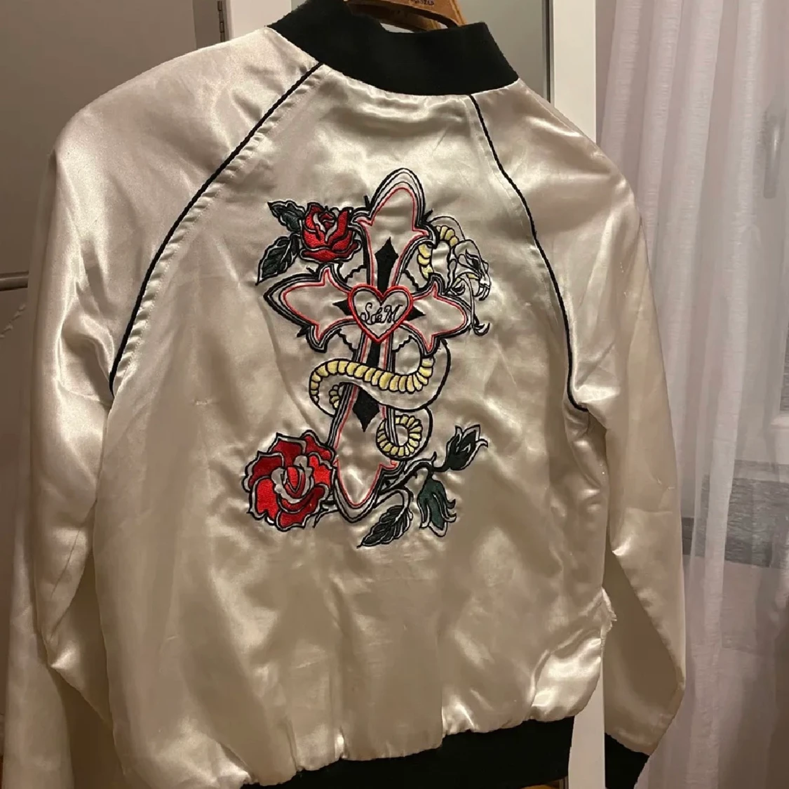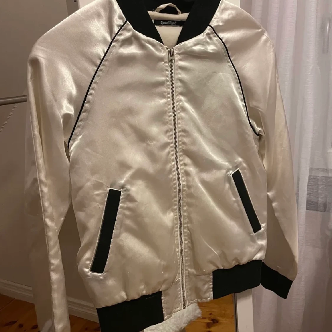 Tunn bomberjacka med motiv/tryck på baksidan