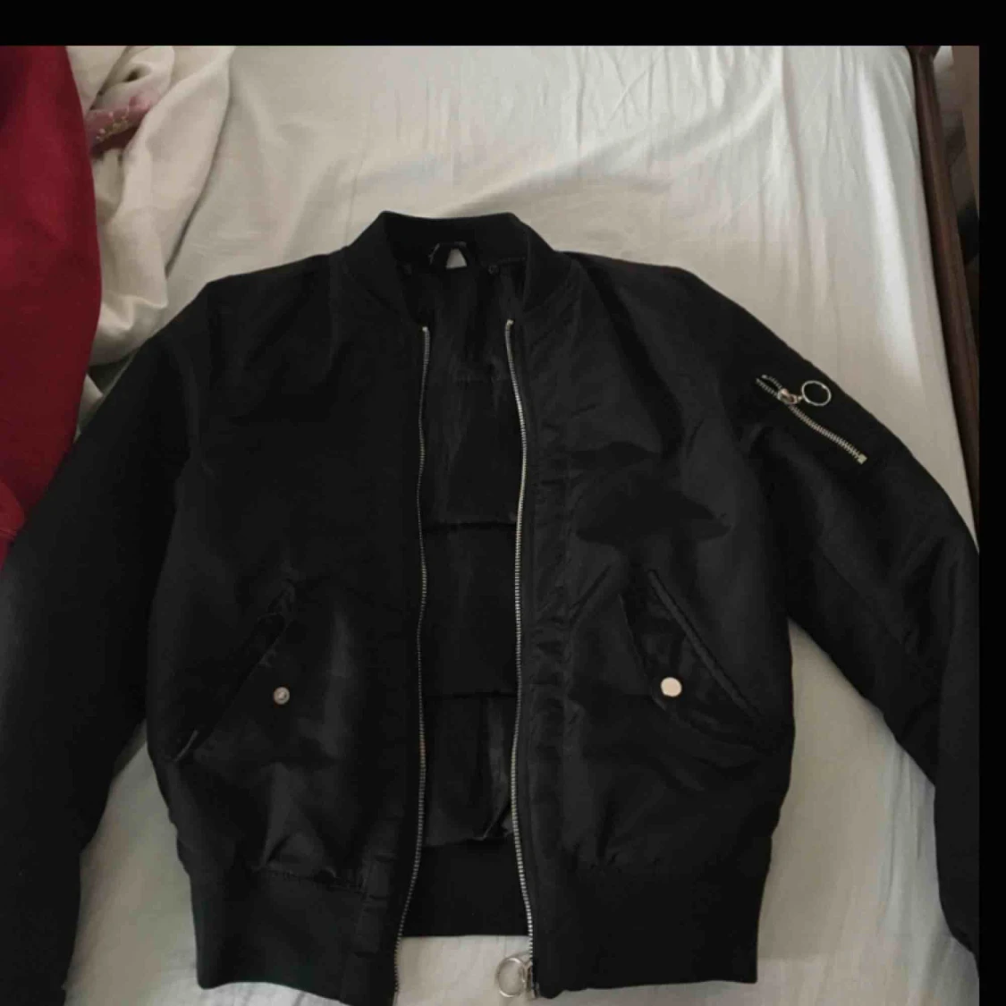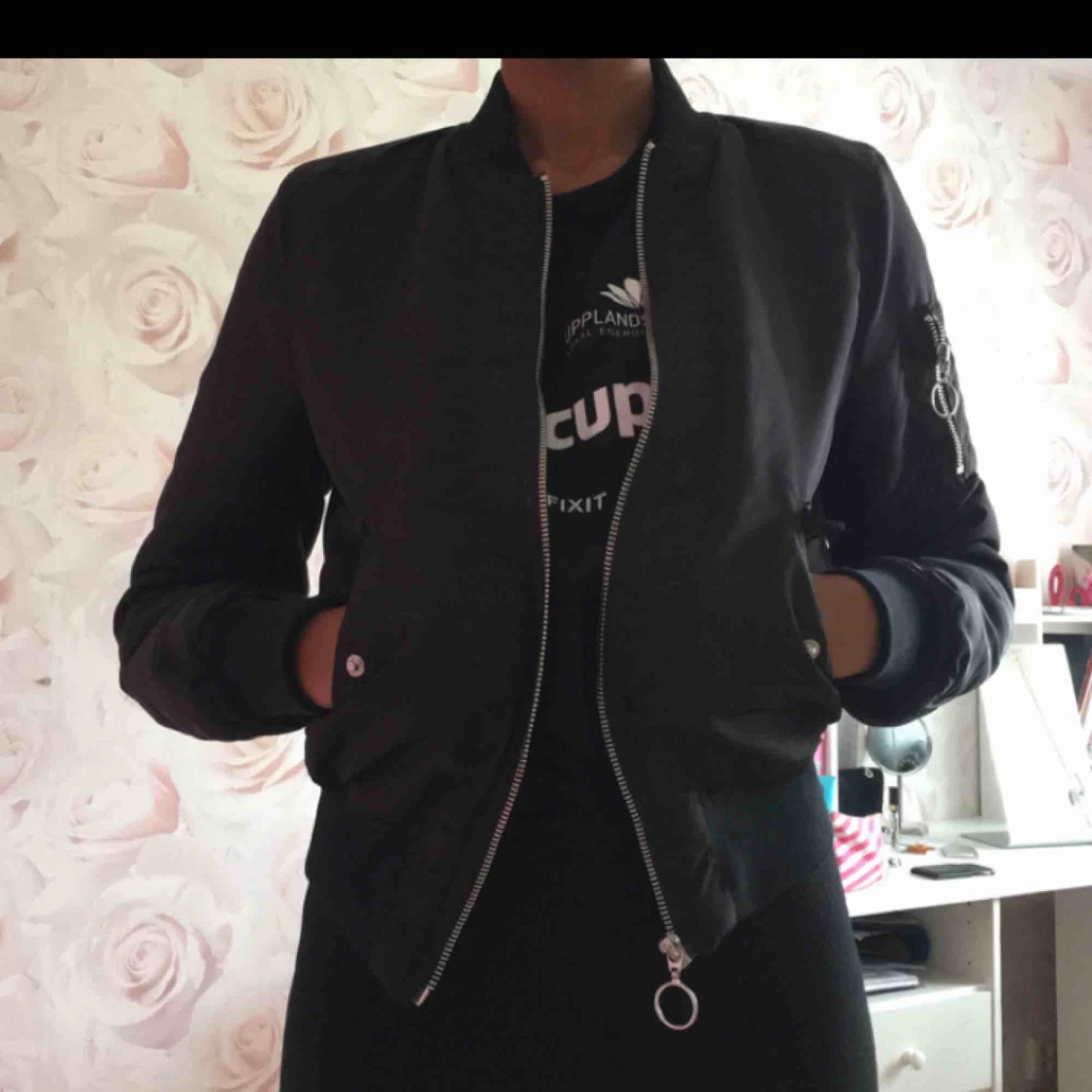 Snygg och trendig svart bomberjacka köpt på H&M. Är i perfekt skick och kan fraktas, annars mötas upp i Uppsala.