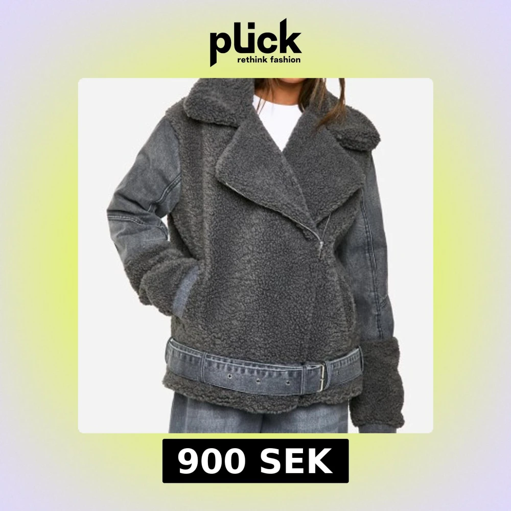 Pris kan diskuteras! Säljer en grå teddyjacka med bred krage och coola jeansdetaljer på ärmar och midja. Jackan har en dragkedja framtill och ett snyggt bälte i denim runt midjan. Perfekt för dig som gillar streetstyle och vill ha något som sticker ut.