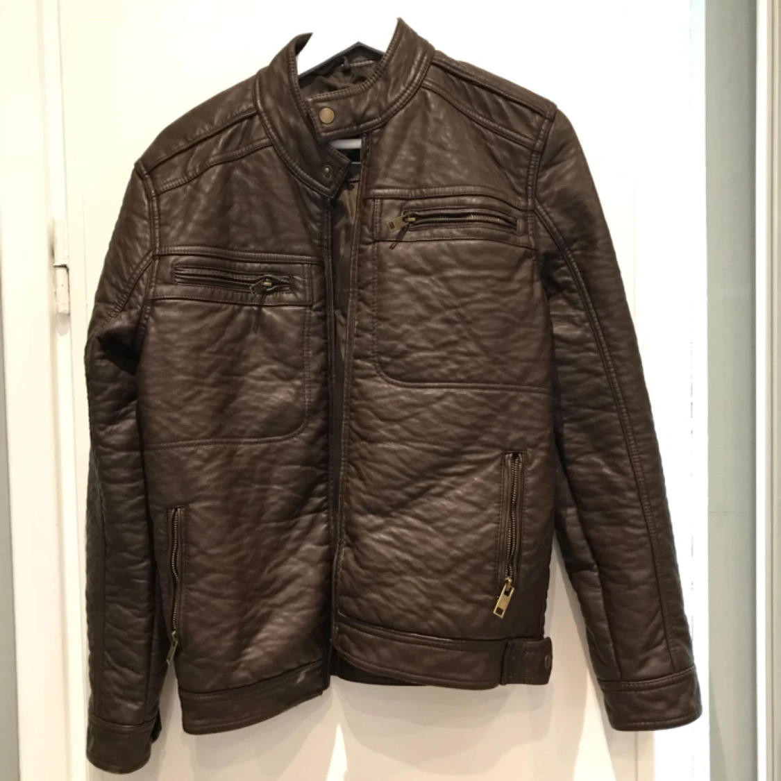 Skinnjacka (dock inte äkta) storlek S, kan hämtas i centrala Stockholm.