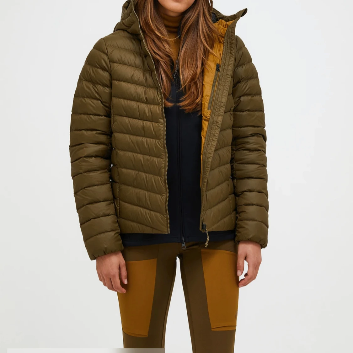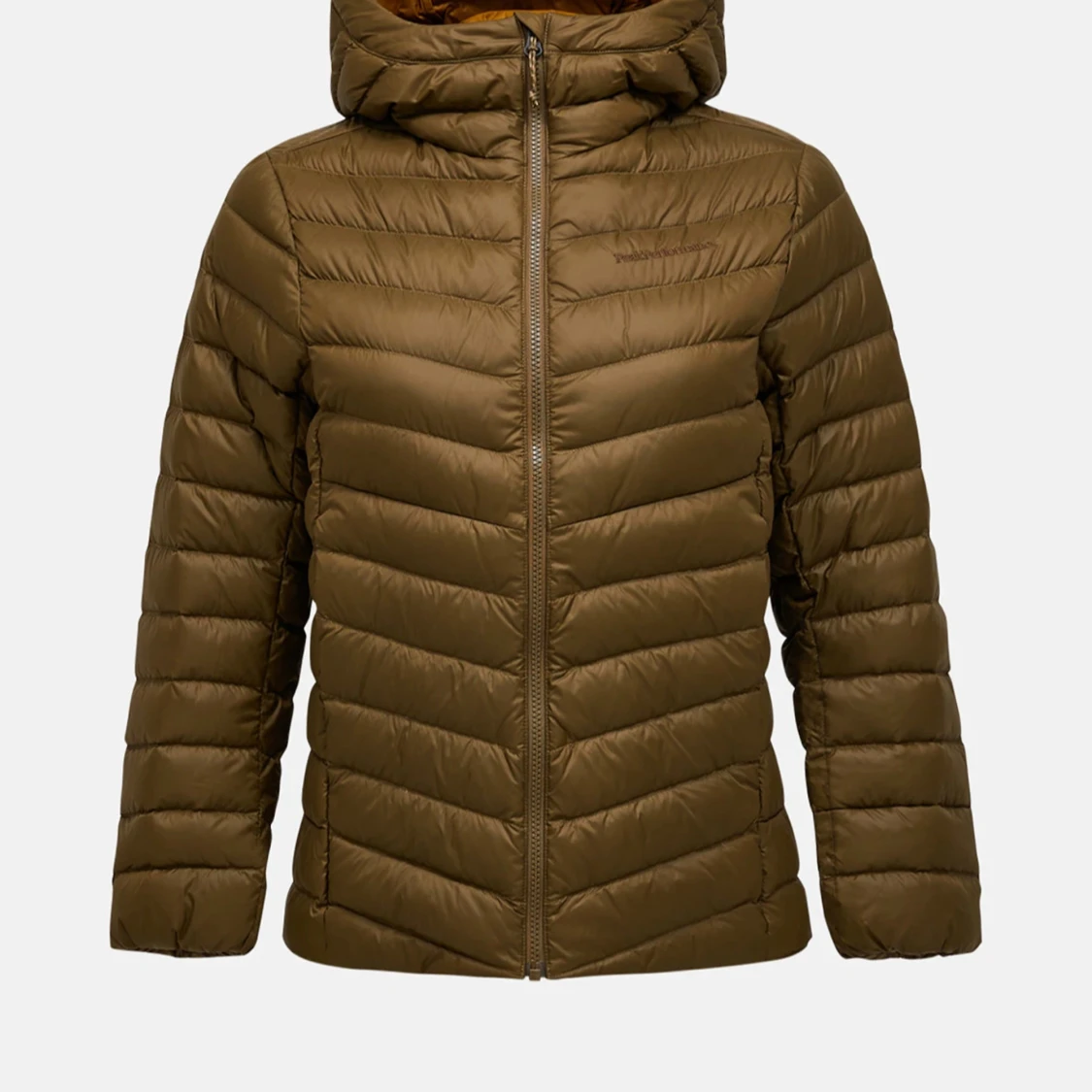 Snygg brun dunjacka från Peak Performance med huva och dragkedja framtill. Jackan har ett quiltat mönster och är tillverkad i lätt syntetmaterial med dunfyllning. Perfekt för kalla dagar och har en clean, sportig look som funkar till många stilar. Det är inte exakt samma men likande form peak❤️
