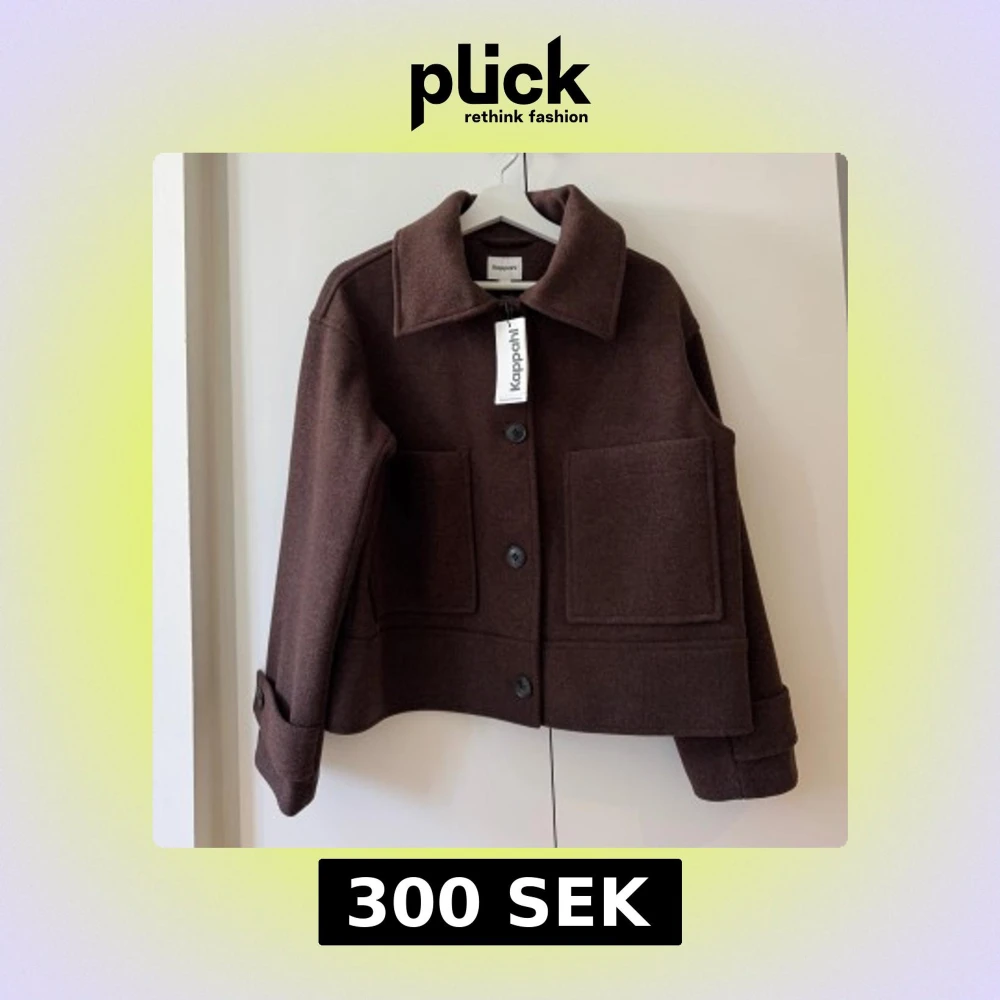 Snygg brun jacka från Kappahl med stora framfickor och knappar framtill, långa ärmar. Köptes inför våren för 899:-, inte fått tillfälle att använda den så lappar etc är kvar.