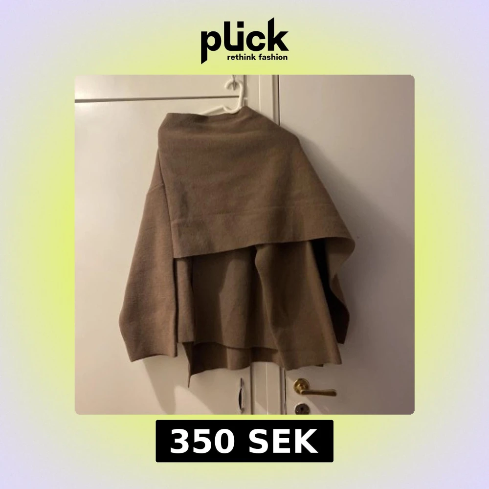 Säljer en brun oversized kappa i ull med bred krage och lös passform. Jackan har långa ärmar och en stilren, minimalistisk look utan synliga knappar eller dragkedja. Perfekt för dig som gillar en chill och trendig vibe.