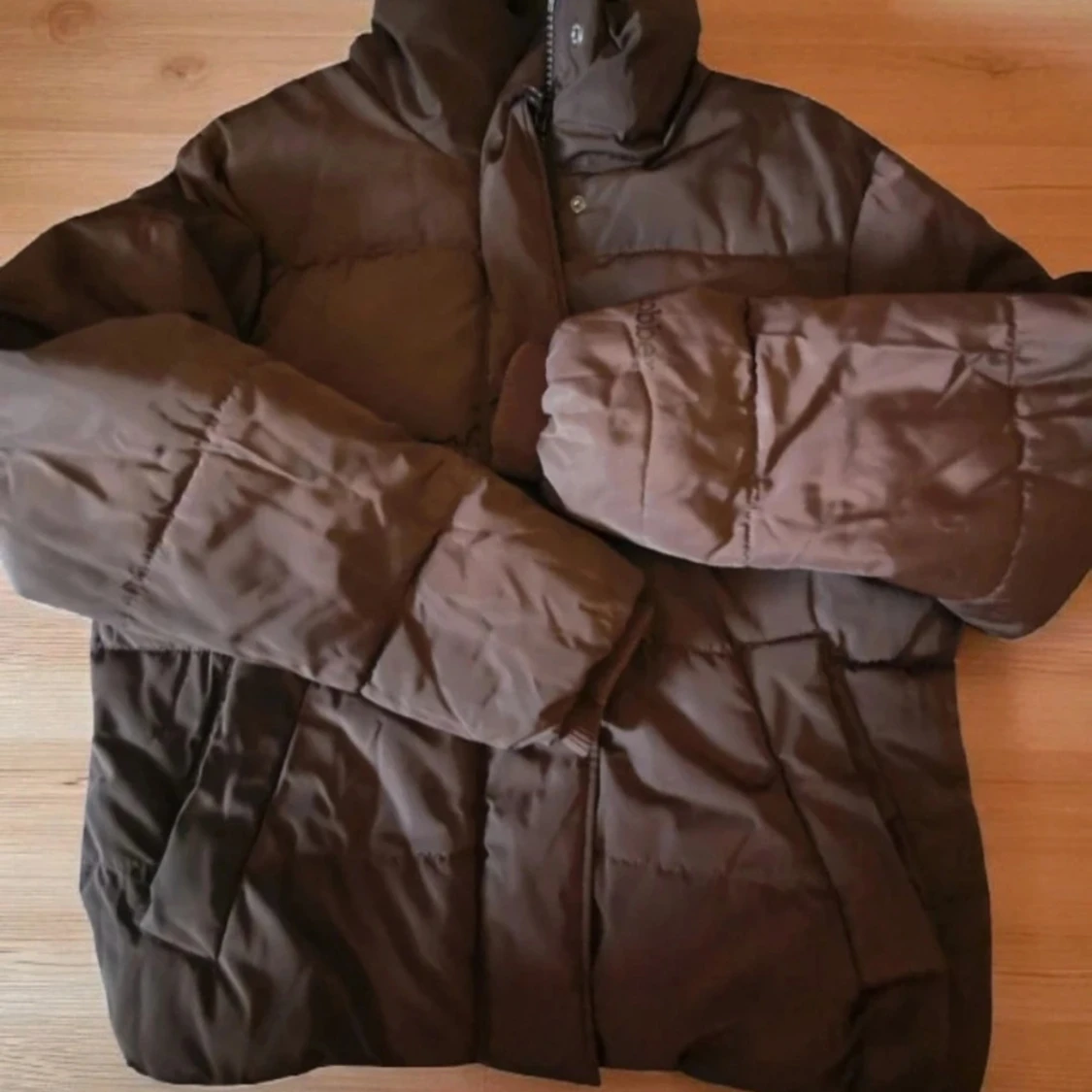 Säljer en brun pufferjacka från Dobber i storlek small. Jackan har hög krage, långa ärmar och quiltad design. Perfekt för kalla dagar med sin tjocka och fluffiga känsla. Stängs med dragkedja och tryckknappar framtill.
