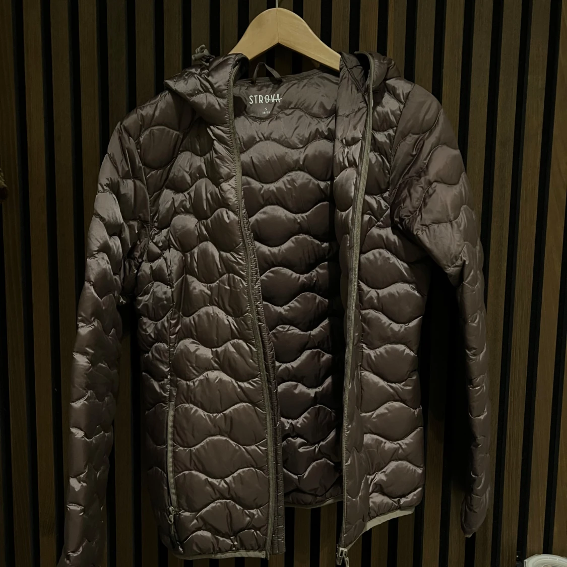 Snygg brun pufferjacka från Strova med dragkedja och huva. Perfekt för kyliga dagar med sin quiltade design som håller värmen. Jackan har en modern look och passar bra till vardags.
