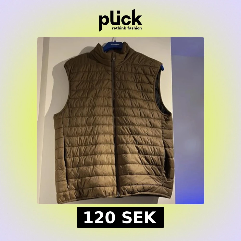 Quiltad brun dunväst från Zara i storlek L. Västen har hög krage, dragkedja framtill och två sidofickor. Perfekt för lager-på-lager och enkel att matcha med olika outfits. Snygg och funktionell för kyligare dagar.