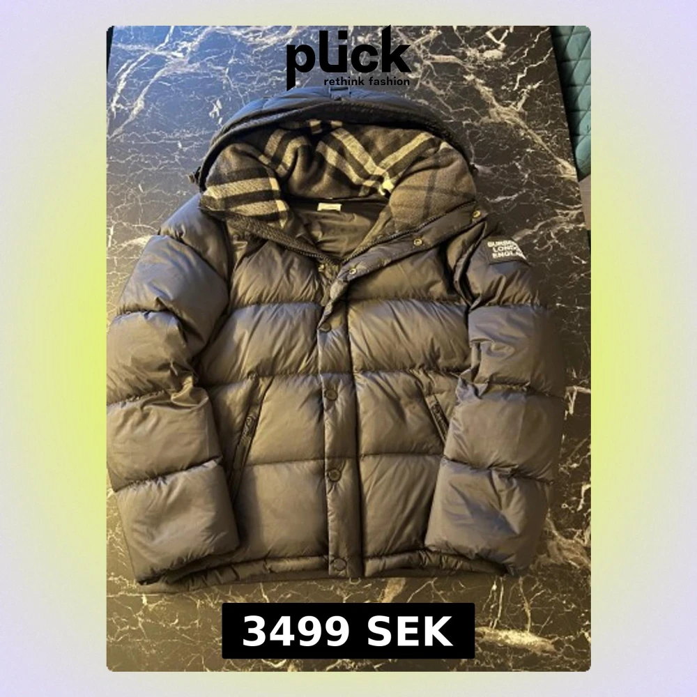 Säljer en svart pufferjacka från Burberry London England i storlek L. Jackan har en quiltad design, huva med rutigt foder i grått och vitt, dragkedja och knappar framtill samt fickor med dragkedja. Perfekt för kalla dagar med sin tjocka och fluffiga look. (Inga returer accepteras)