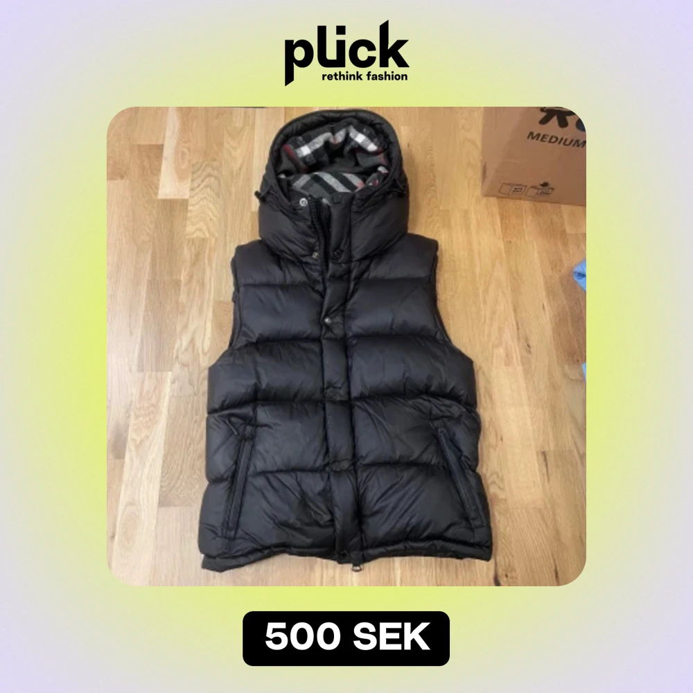 Svart burberry jacka med rutig luva. Den saknar armarna, så har använts som väst endast.