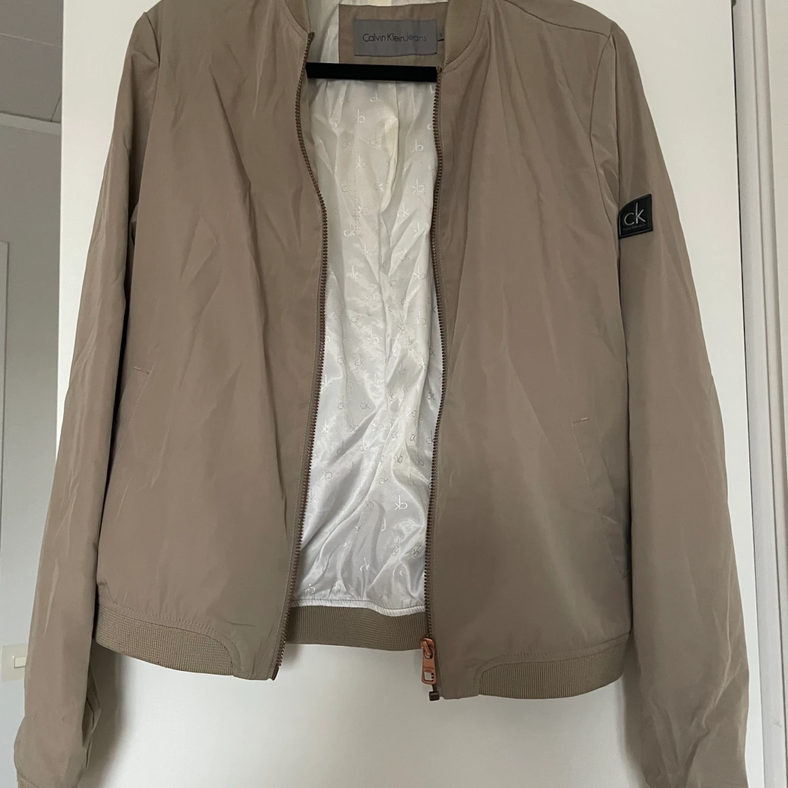 Calvin klein jacka i beige. Bomber jacka. Sparsamt använd. Storlek S. Köparen står för frakt.
