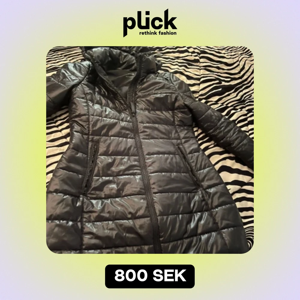 En glansig lång svart calvin klein jacka som är använd ett antal gånger. Den är storlek. XL men det stod bara så för min mamma använde den och den passade bra och hon är storlek M så egentligen M. Säljer på grund av att jag behöver pengar .