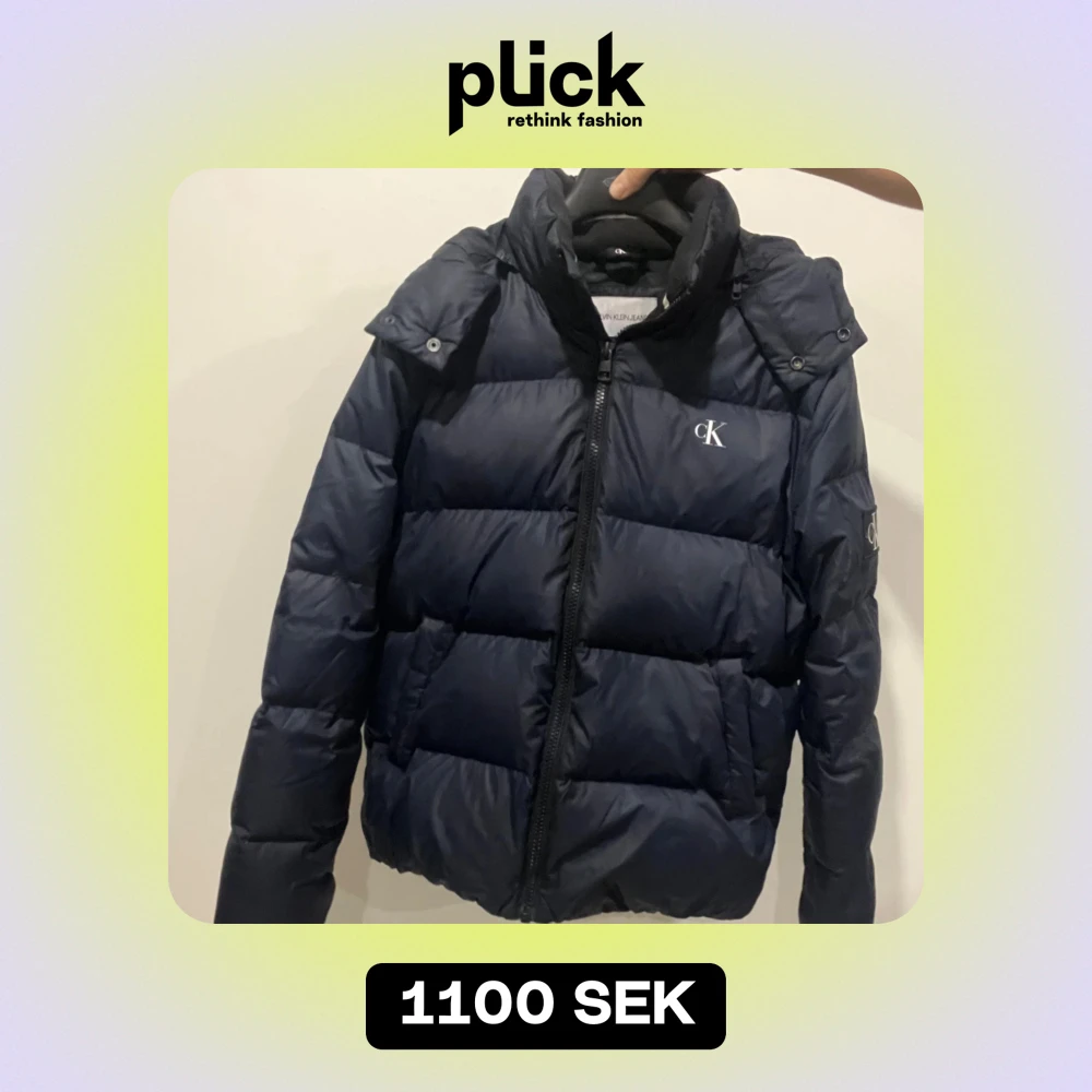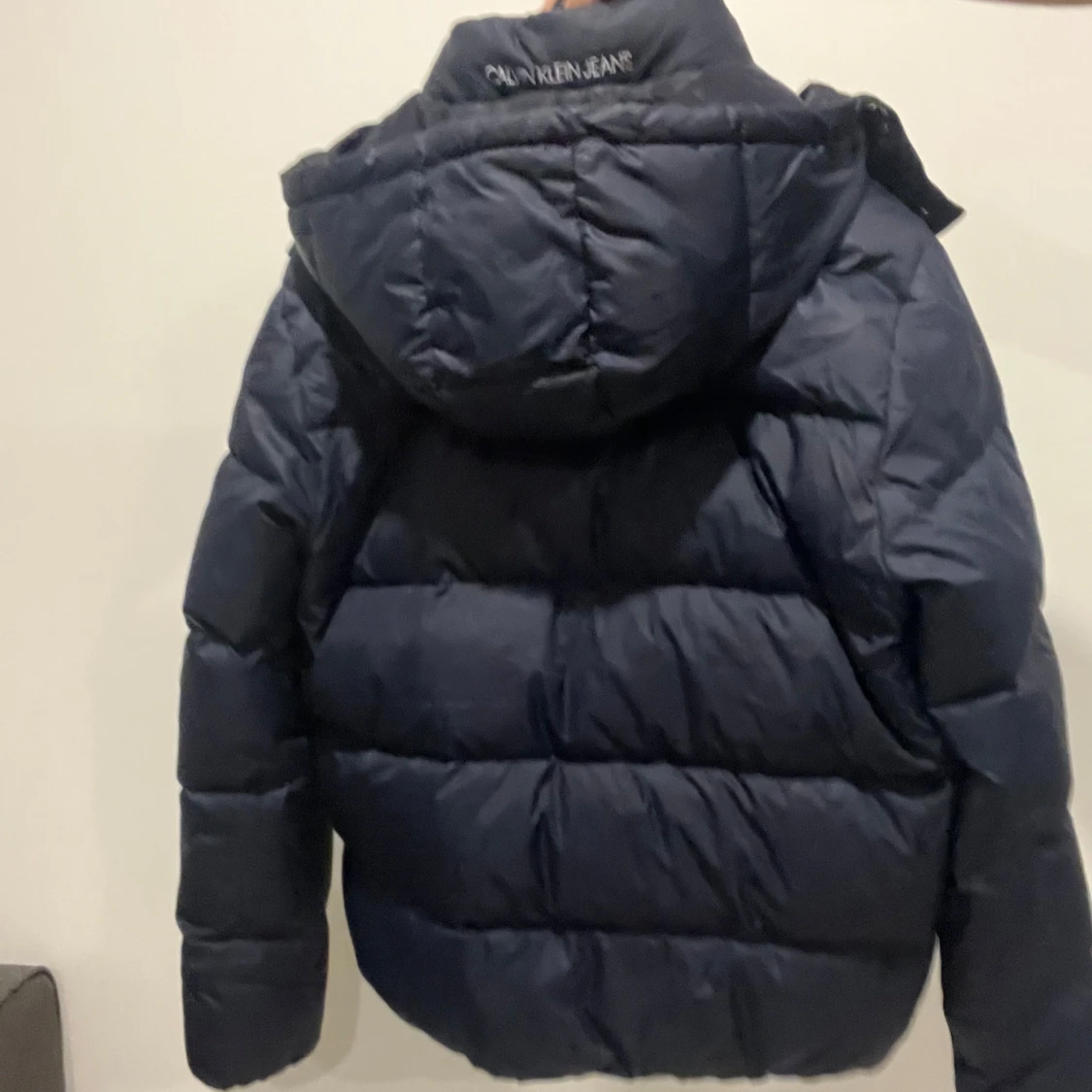 Säljer en snygg mörkblå pufferjacka från Calvin Klein i ett sprillans nytt skick. Jackan har en dragkedja framtill och är quiltad för extra värme. Den har långa ärmar och en huva för att skydda mot kyla. Perfekt för vintern och hösten!