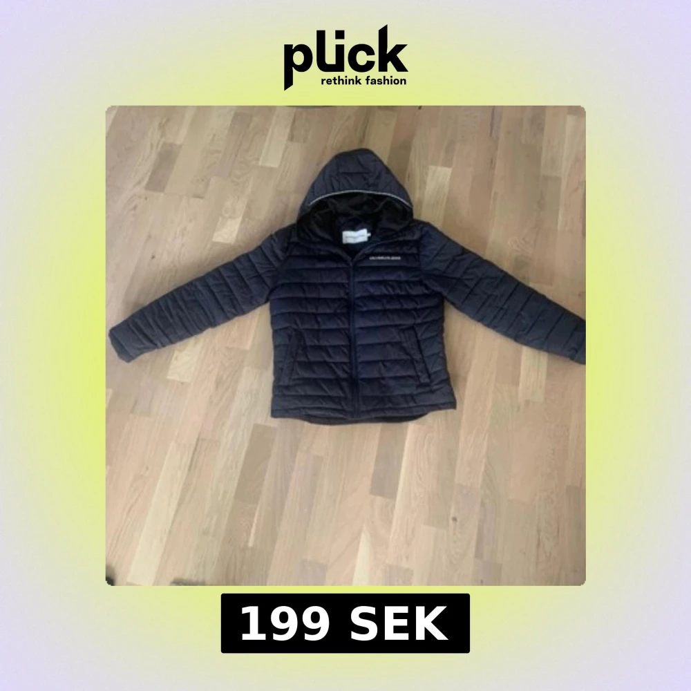 Svart pufferjacka från Calvin Klein Jeans med huva och diskret logga på bröstet. Jackan är quiltad, har dragkedja framtill och är tillverkad i syntetmaterial. Perfekt för kyliga dagar och har en clean, modern look. Lite defekter men syns knappt när jackan är på